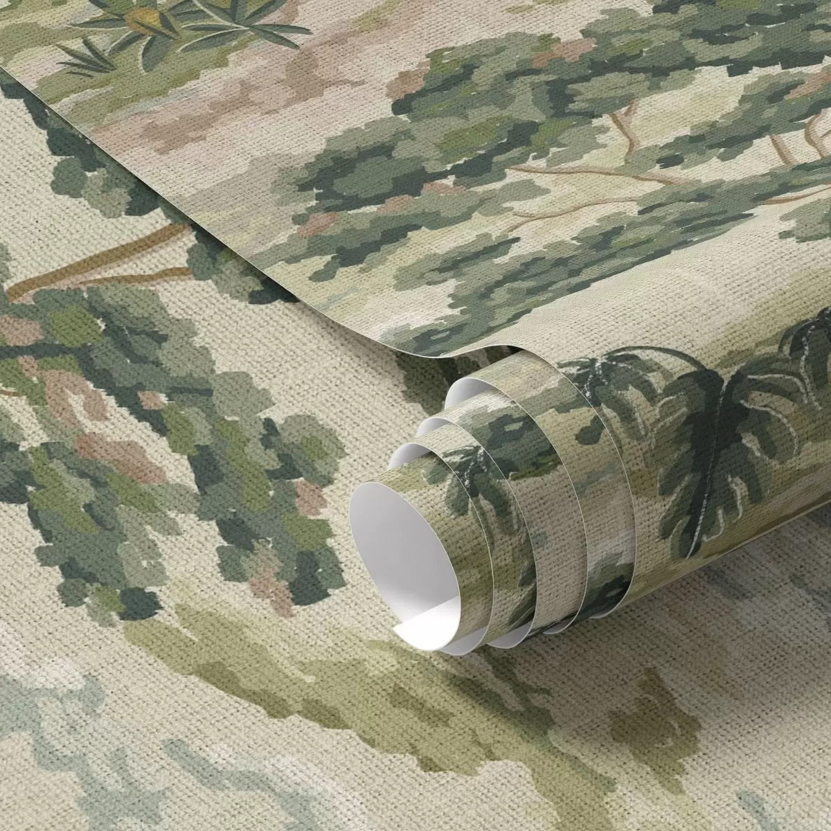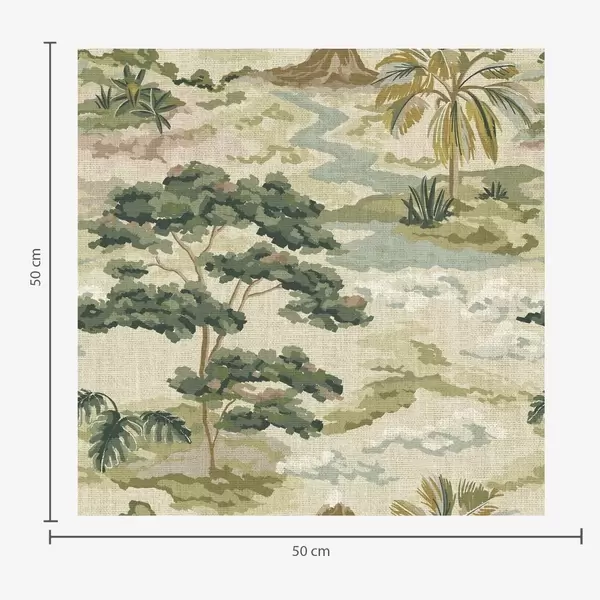 Tapet Landskap med elv, trær og palmer i myke farger Nr. a00736