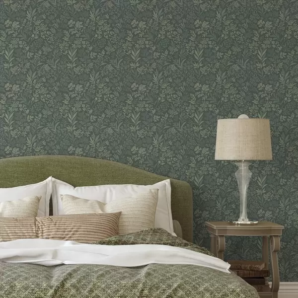 Tapet Smaragdgrønt gress og bær, fint botanisk mønster Nr. a00740