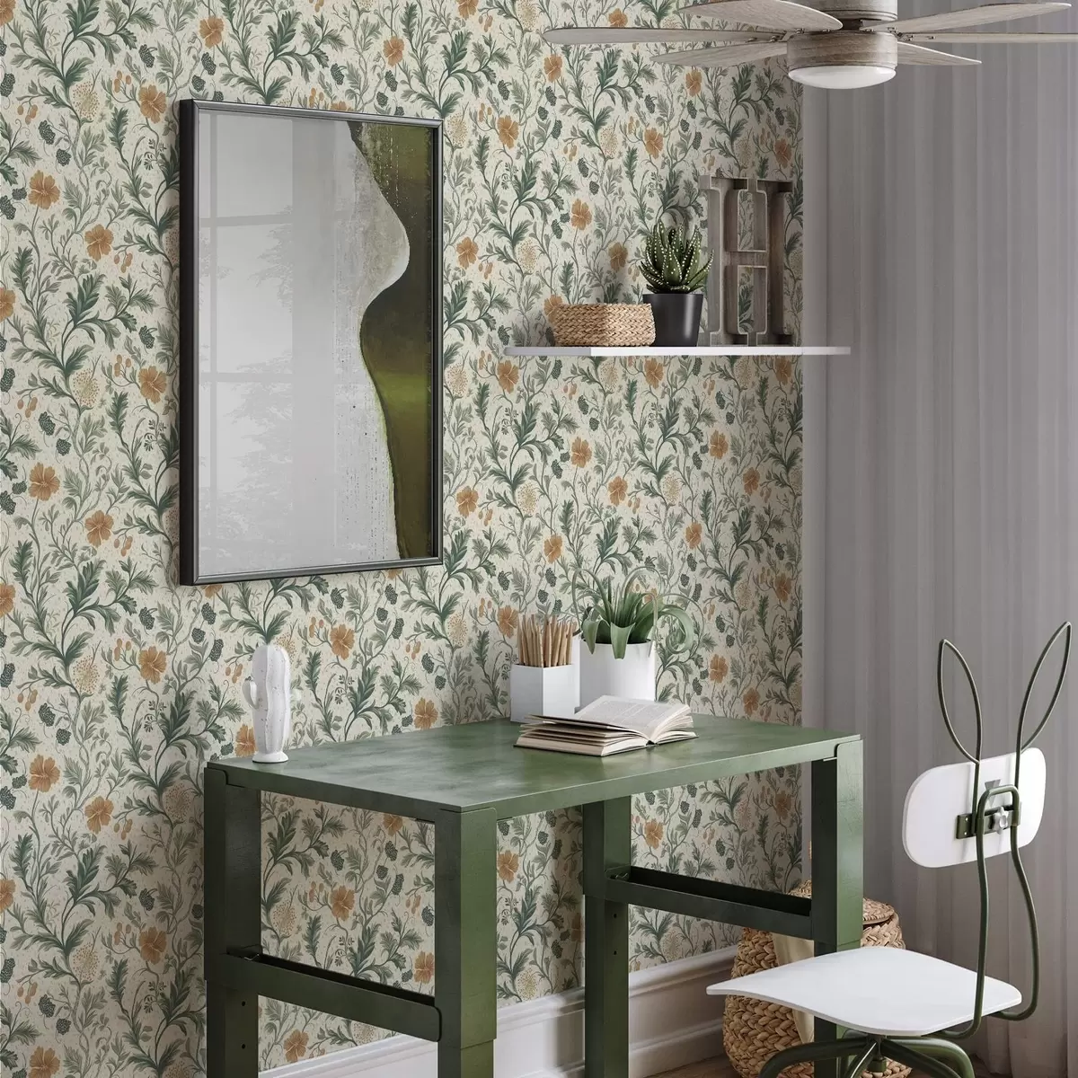 Tapet Tynne grener med blomster og bær på en kornete bakgrunn Nr. a00744