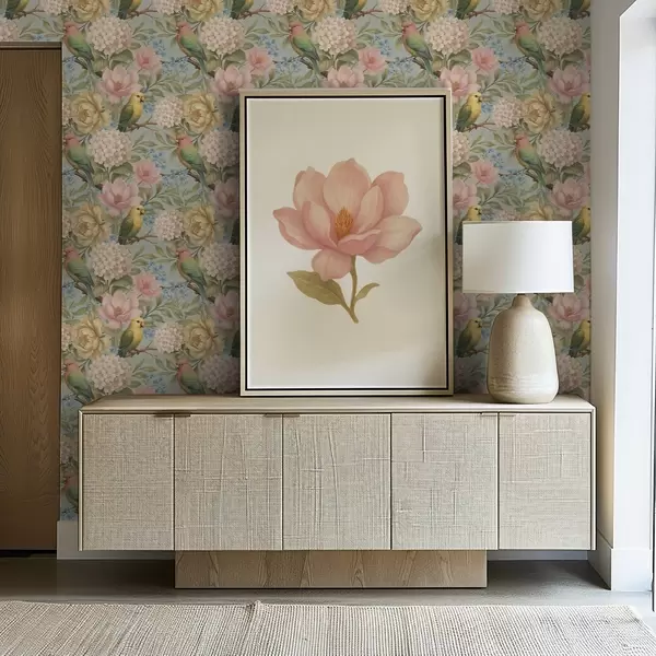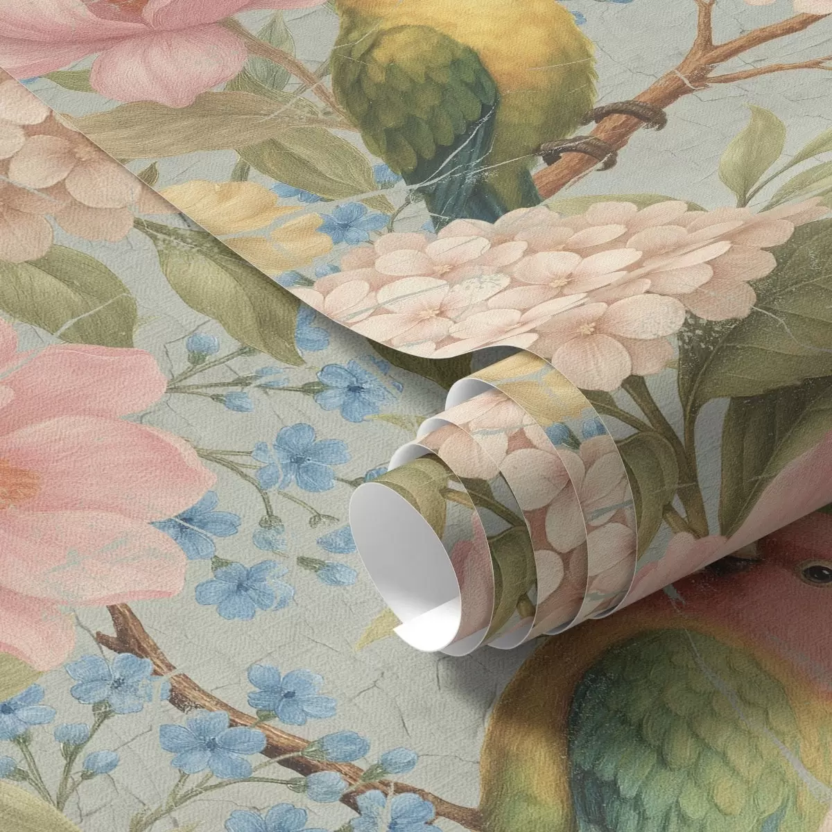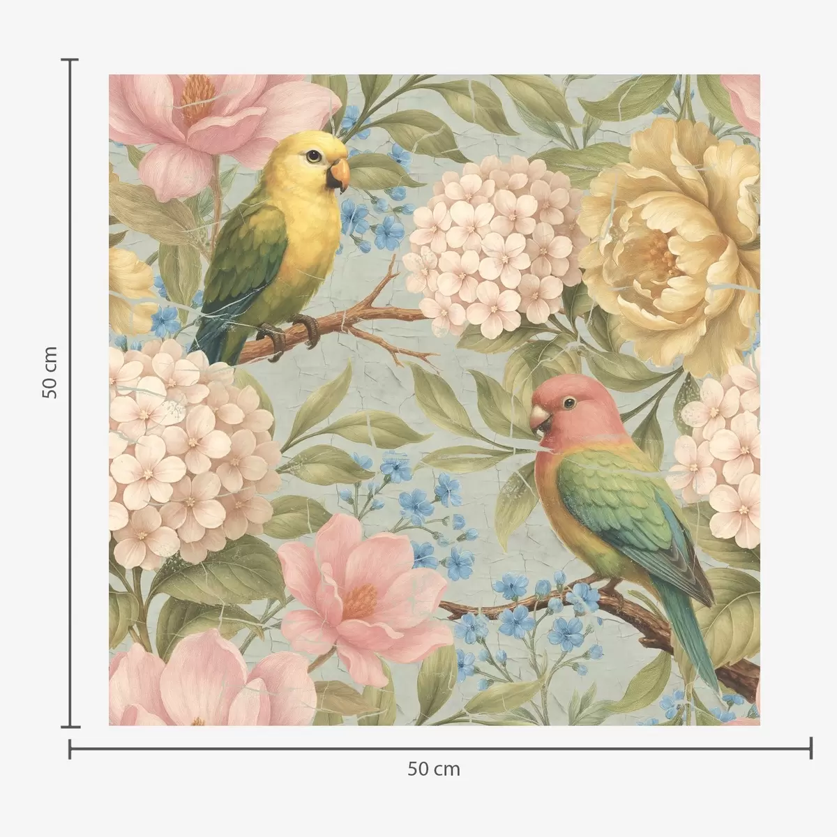 Tapet Papegøyer blant pioner, hortensiaer og magnoliaer Nr. a00747