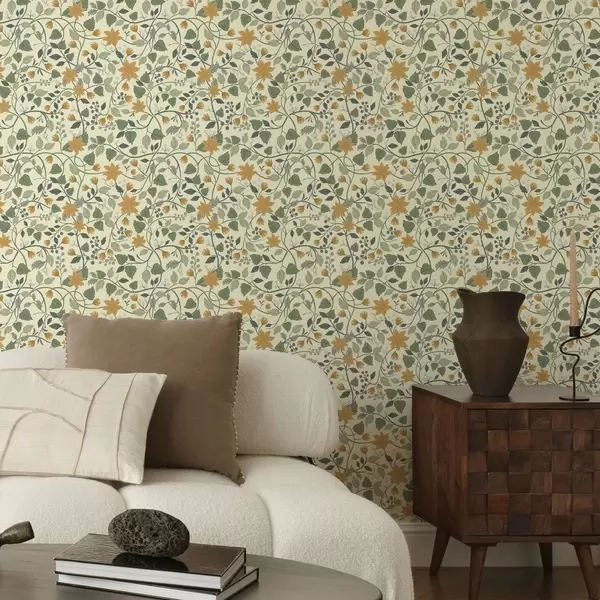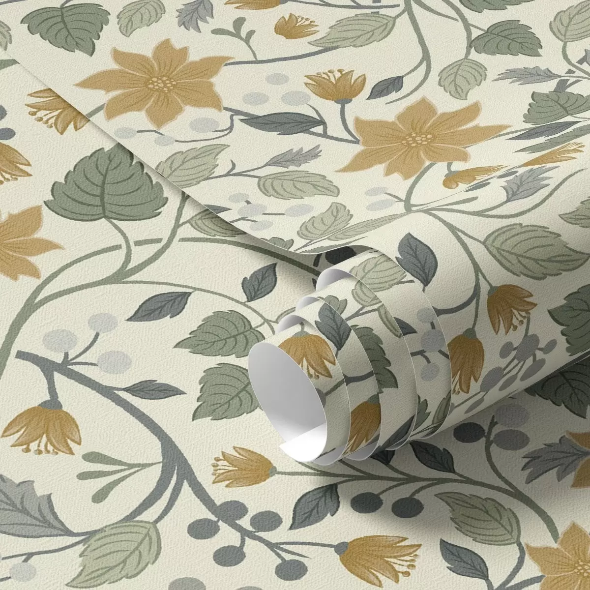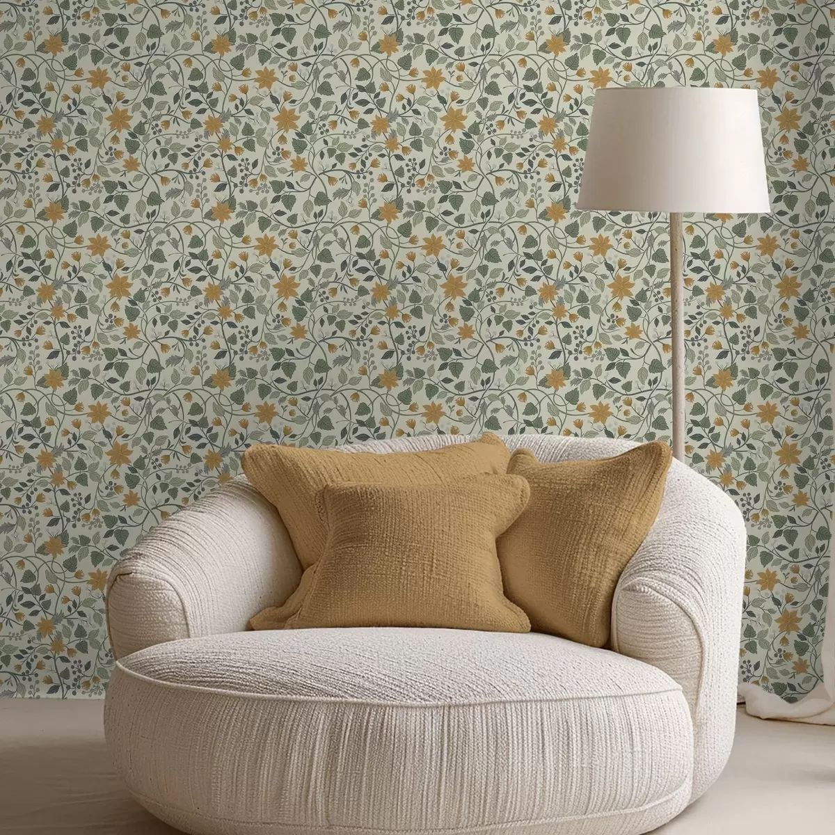 Tapet Klatring på blomstergrener med gule blomster og bær Nr. a00750