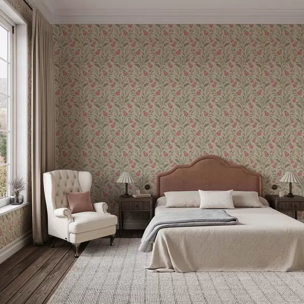 Tapet Små blomster med klokker i rosa-grønn palett Nr. a00760