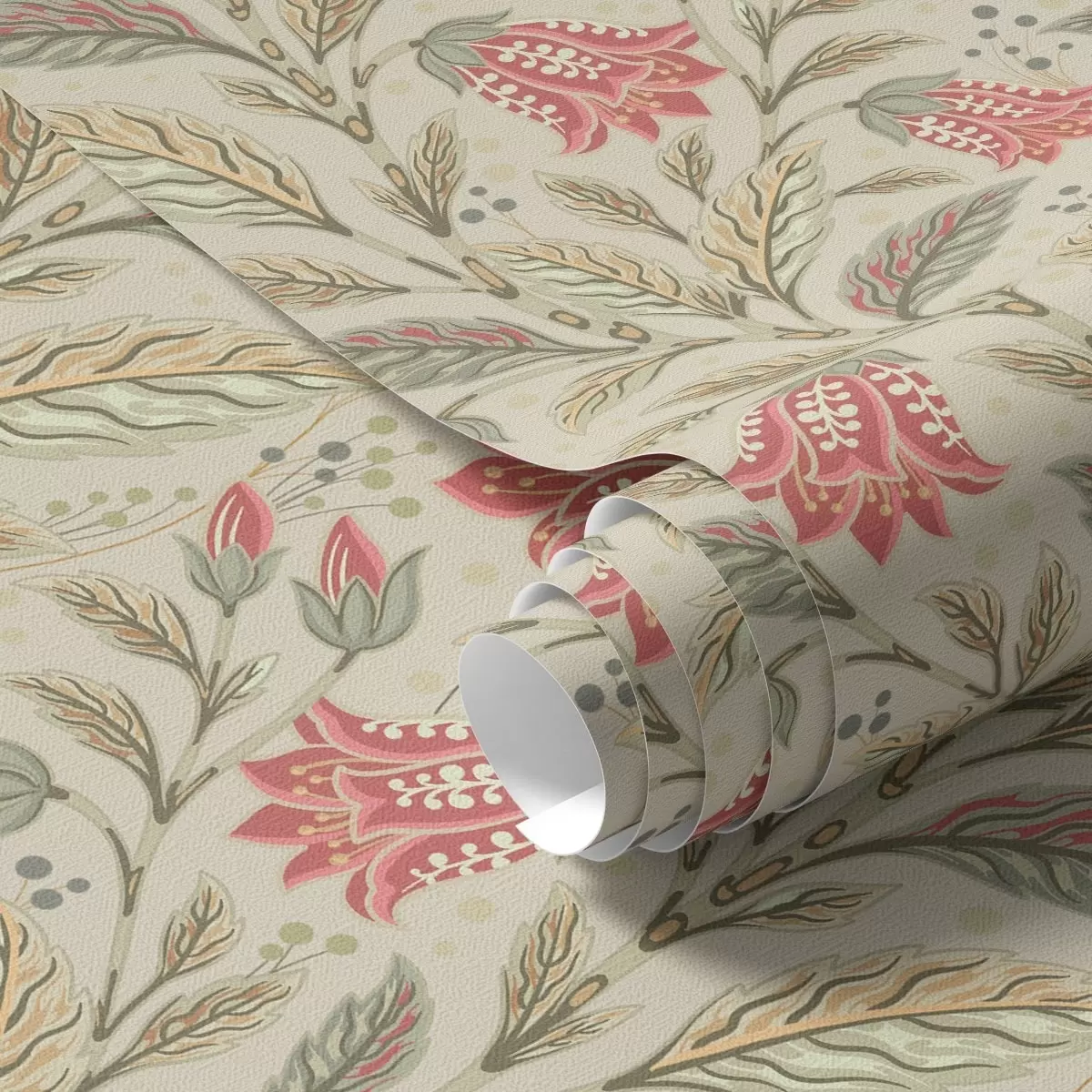 Tapet Små blomster med klokker i rosa-grønn palett Nr. a00760