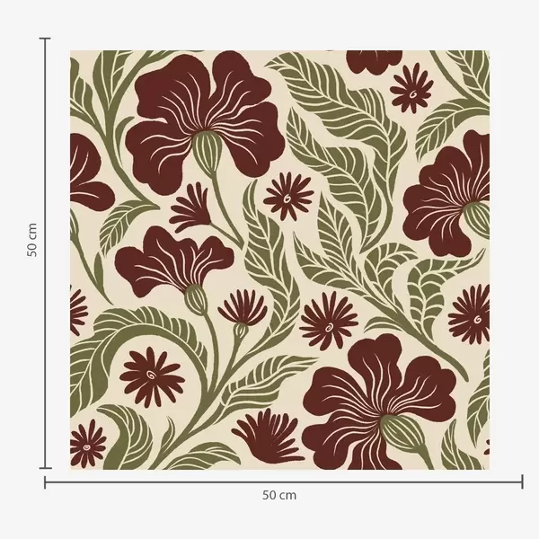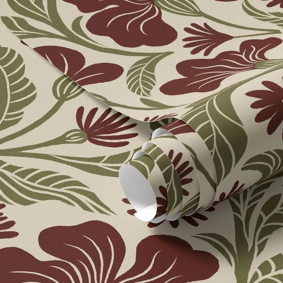 Tapet Burgunderblomster med grønne blader på lys bakgrunn Nr. a00761