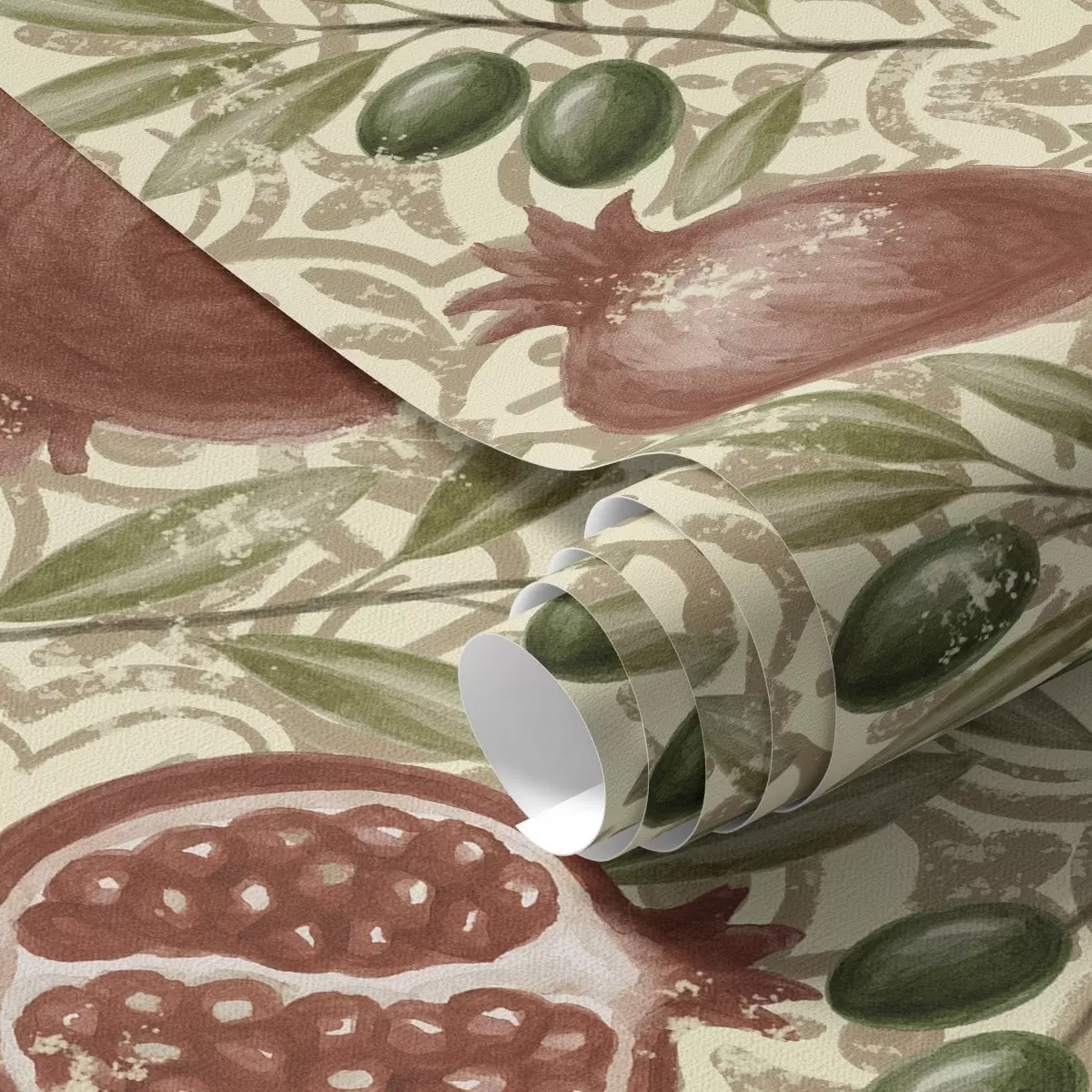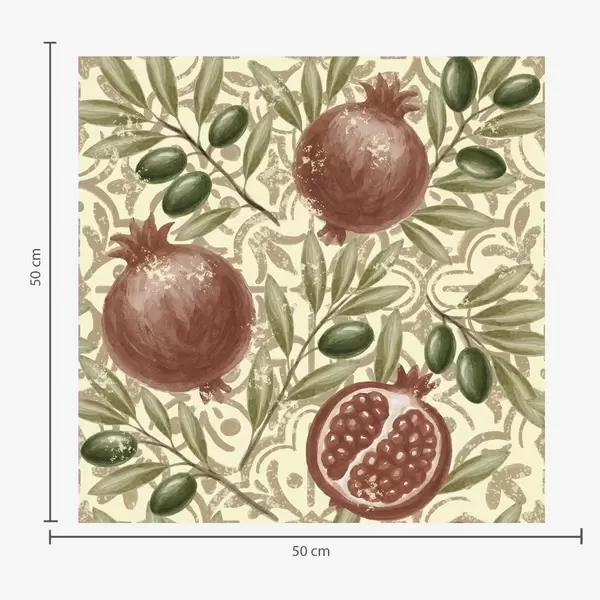 Tapet Granateple og olivengrener på dekorativ bakgrunn Nr. a00764