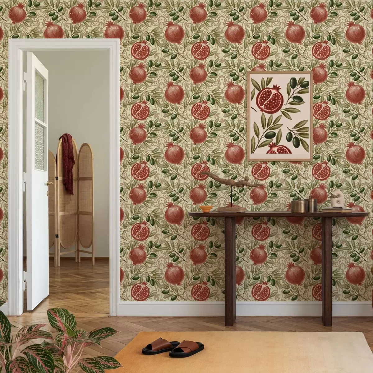 Tapet Granateple og olivengrener på dekorativ bakgrunn Nr. a00764