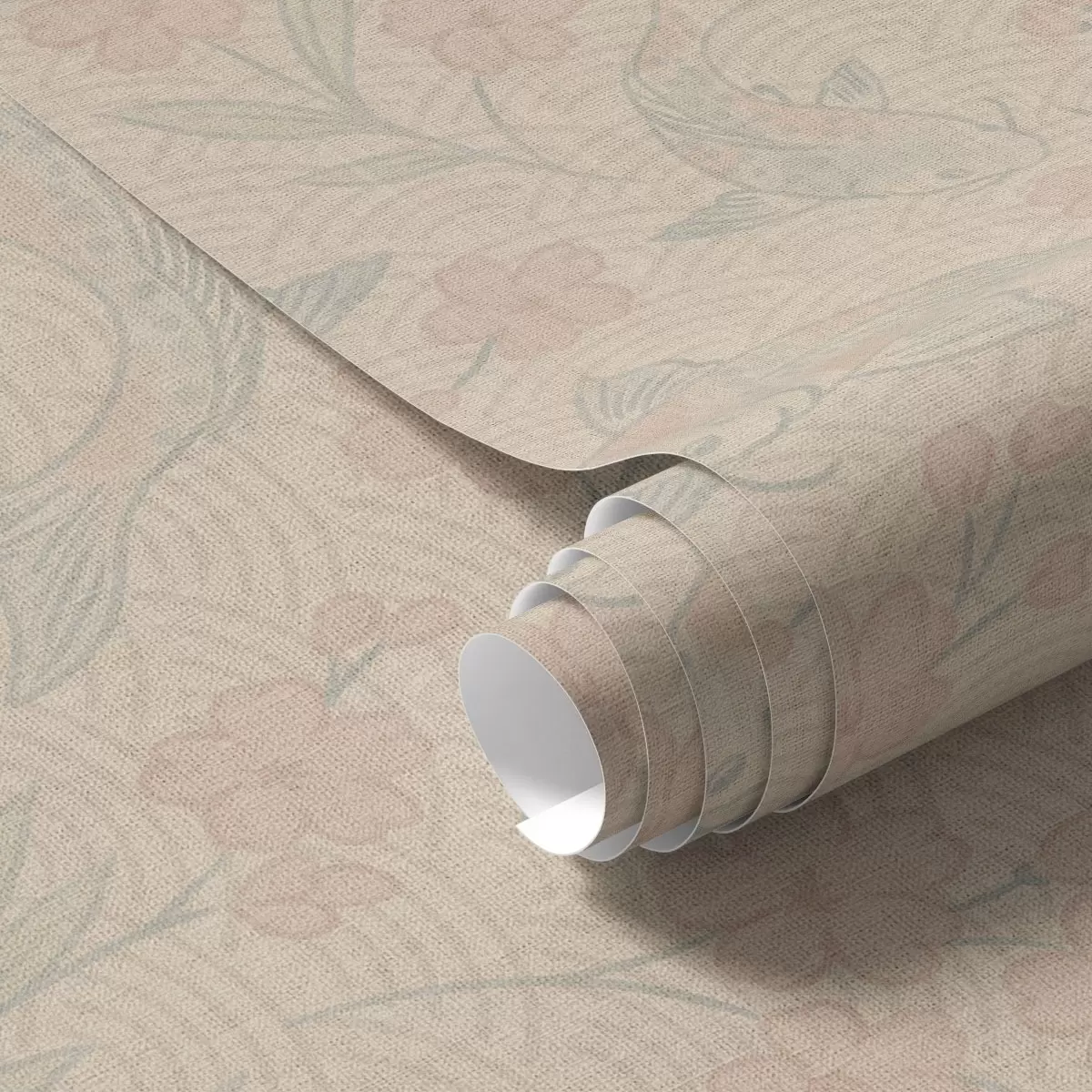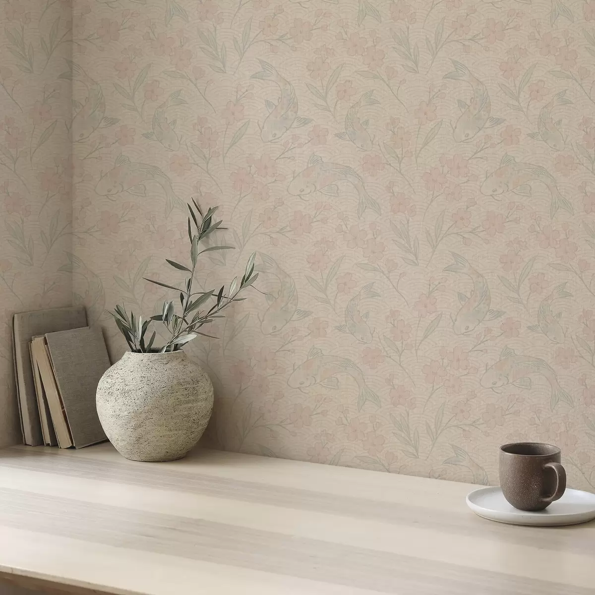 Tapet Karper blant blomster i myke beige-rosa nyanser Nr. a00766