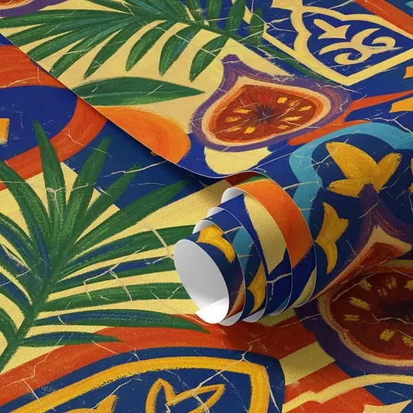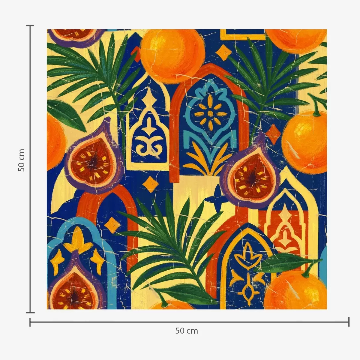 Tapet Lyse appelsiner, palmeblader og marokkanske buer Nr. a00767