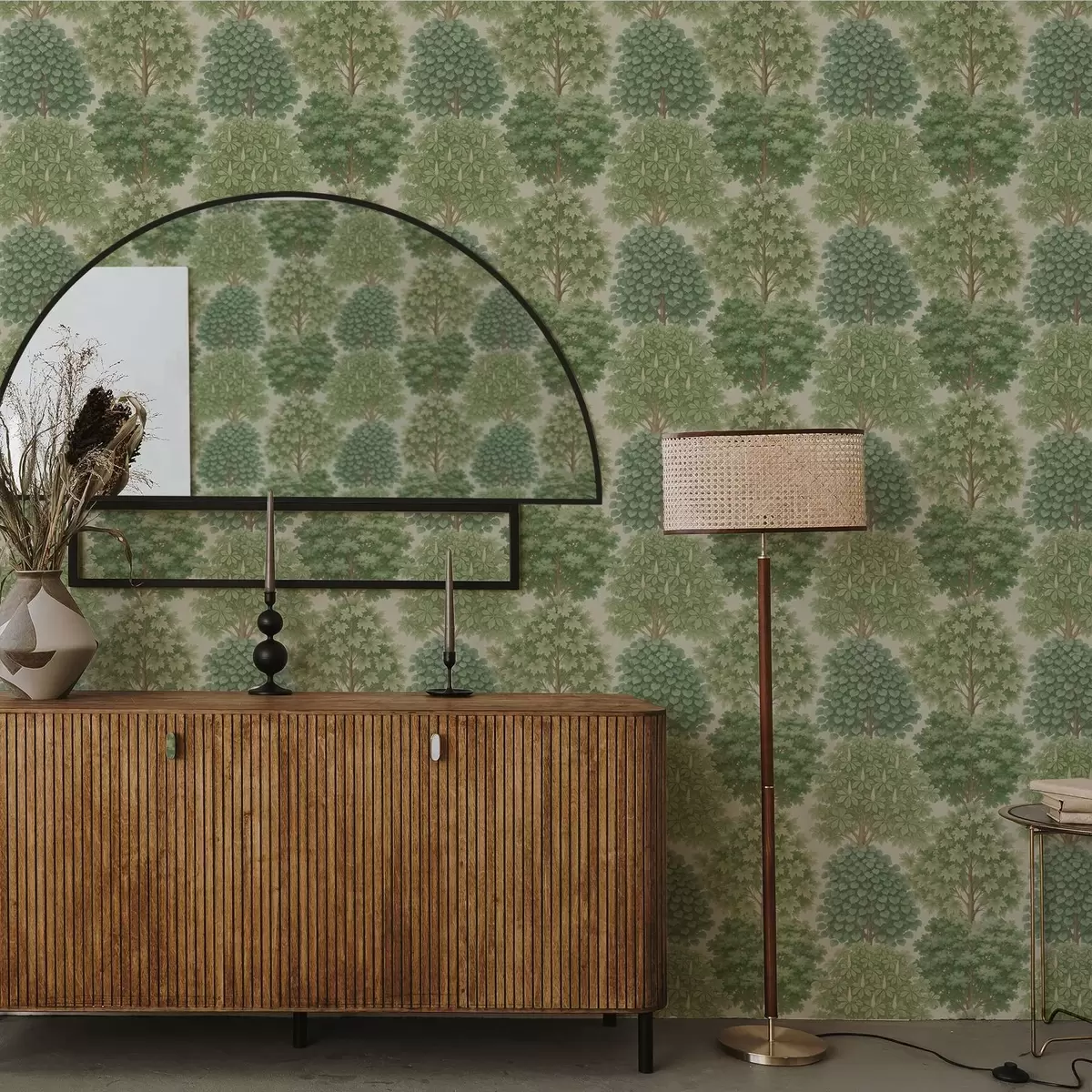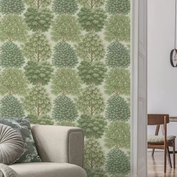 Tapet Tre-hage i myke grønnfarger på en lys bakgrunn Nr. a00775