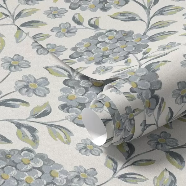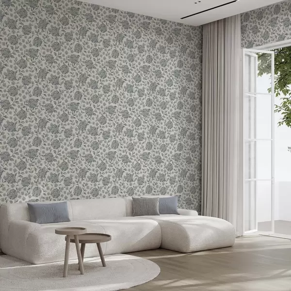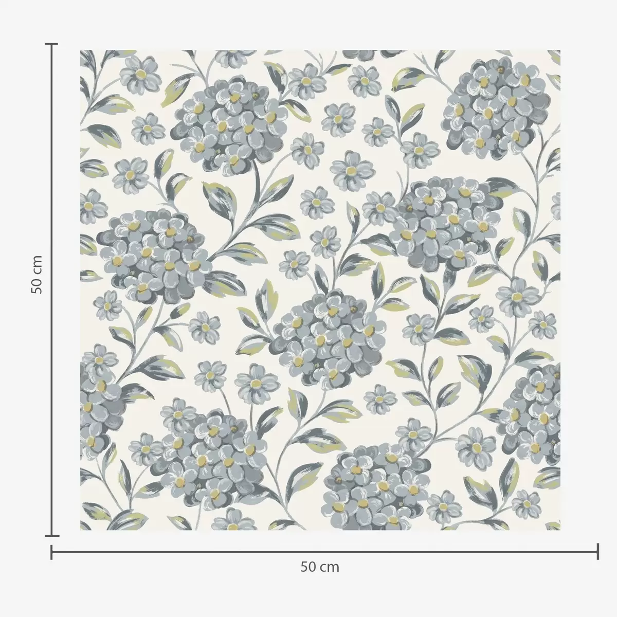 Tapet Buskete blomster og blader i en gråblå palett Nr. a00778