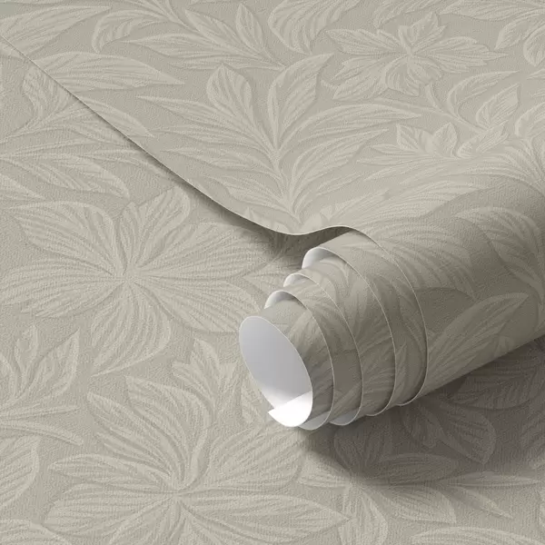Tapet Pregede bladsilhuetter, varm taupe Nr. a00781