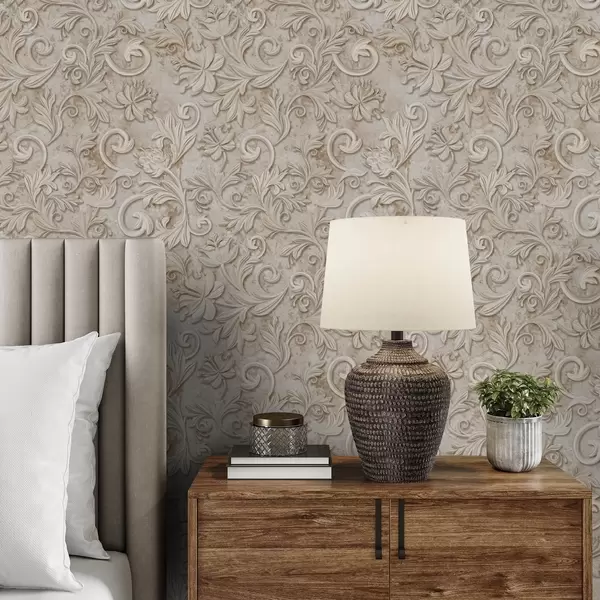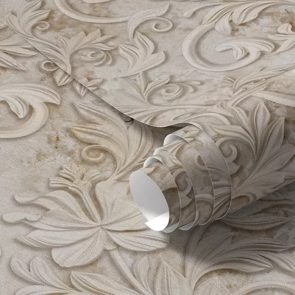 Tapet Steinrelieff med blomsterranker, vintage beige Nr. a00784