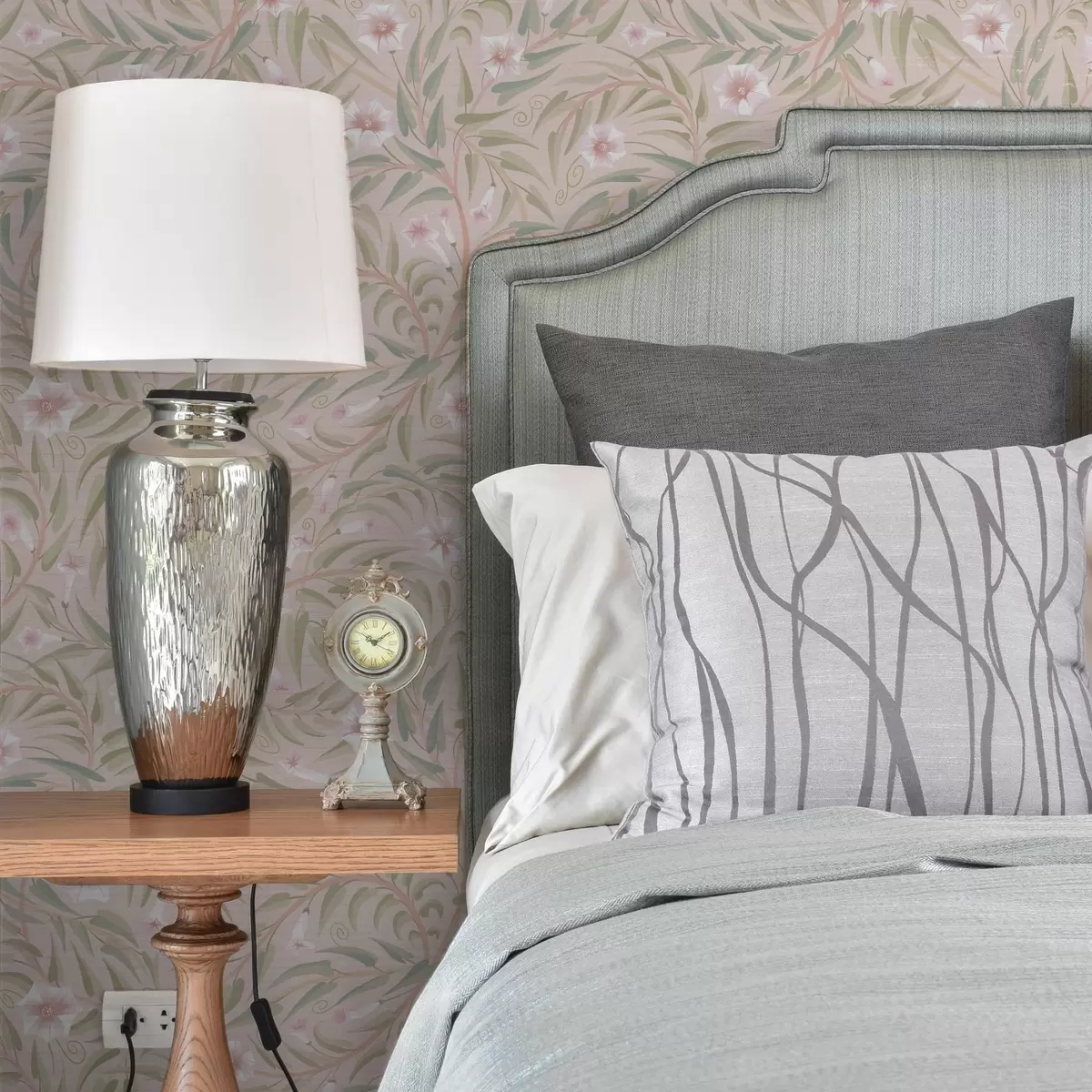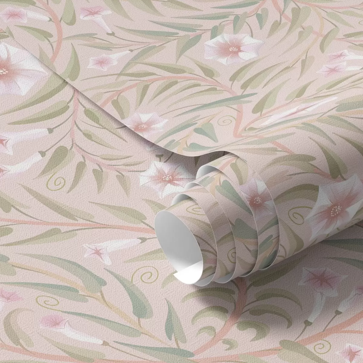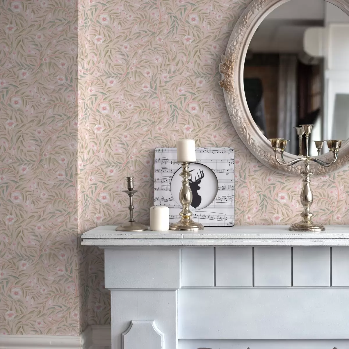 Tapet Delikate rosa blomster og myke blader på pastellbakgrunn Nr. a00788