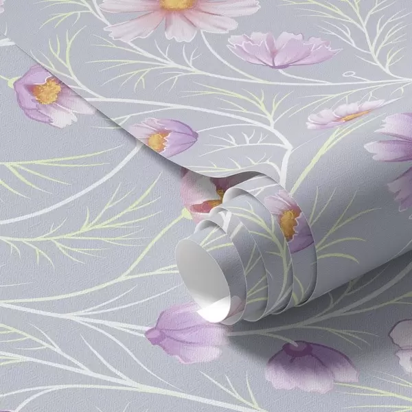 Tapet Rosa kosmos og slanke stilker på grå bakgrunn Nr. a00791