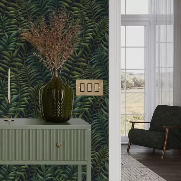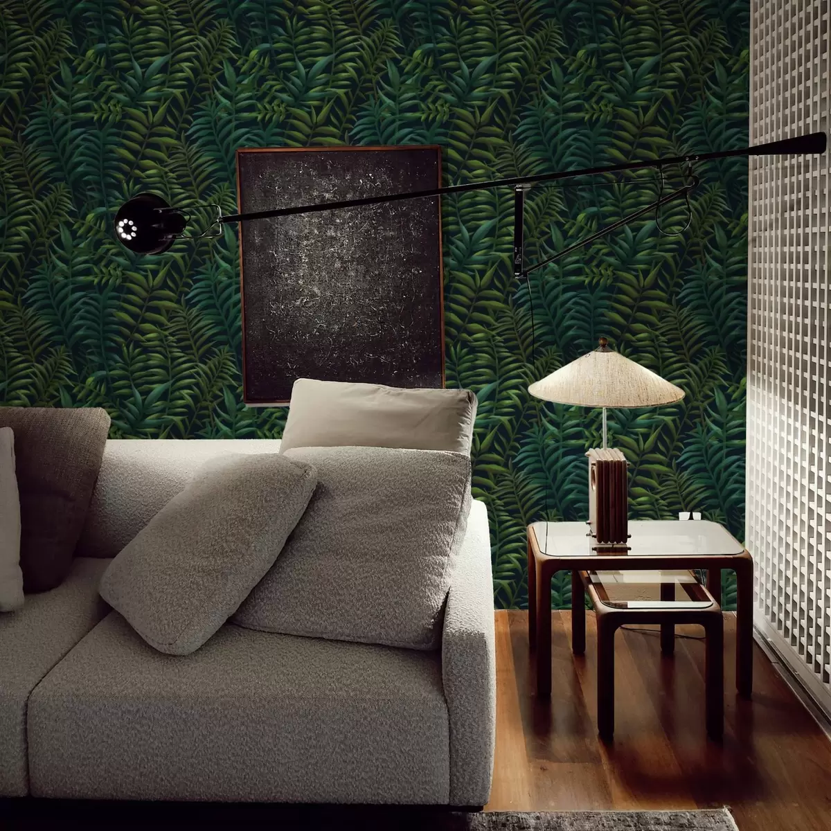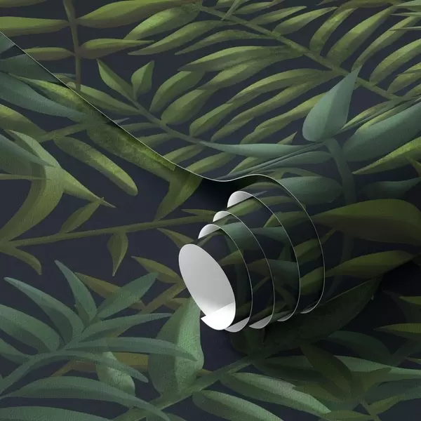 Tapet Mørke tropiske blader på en mørk bakgrunn Nr. a00794