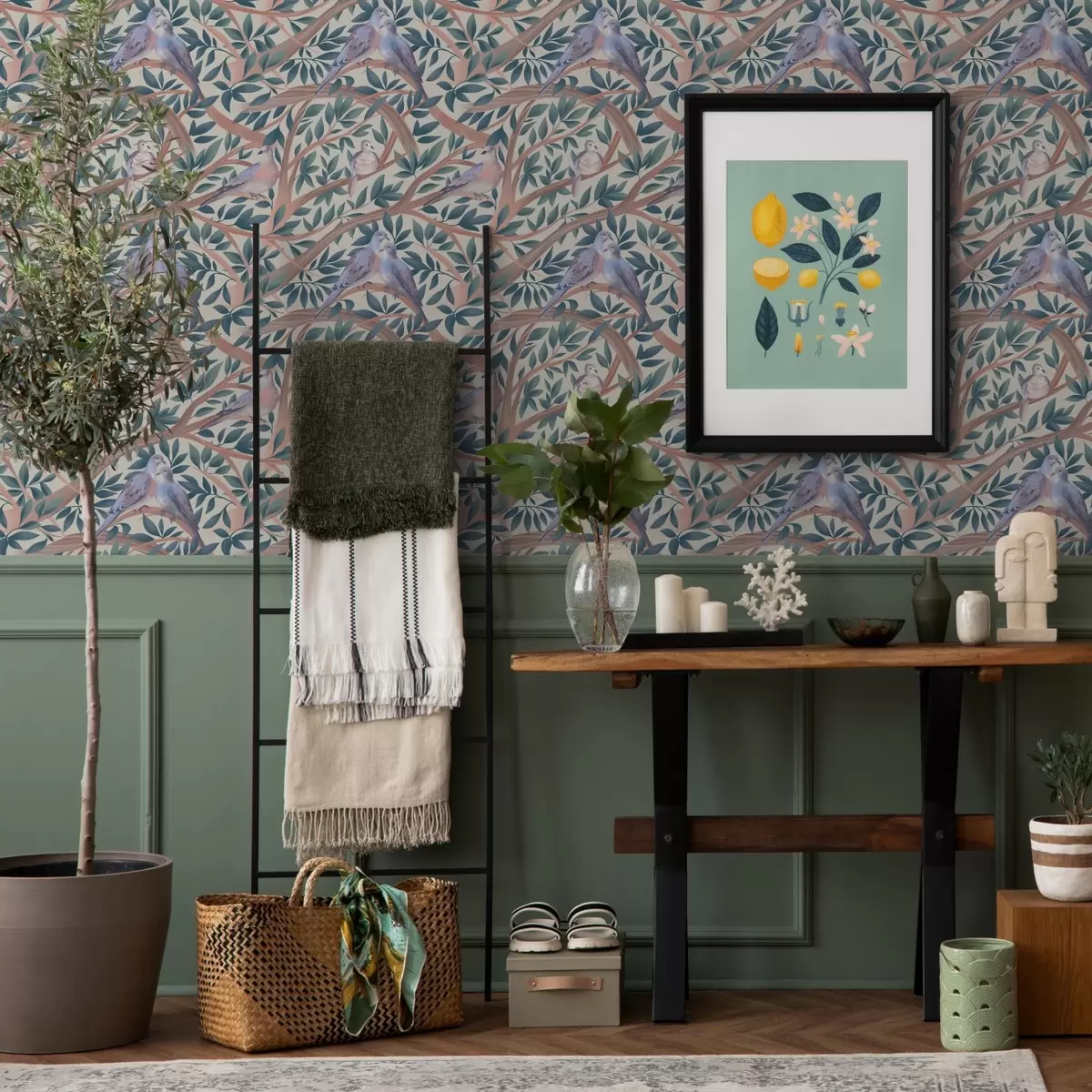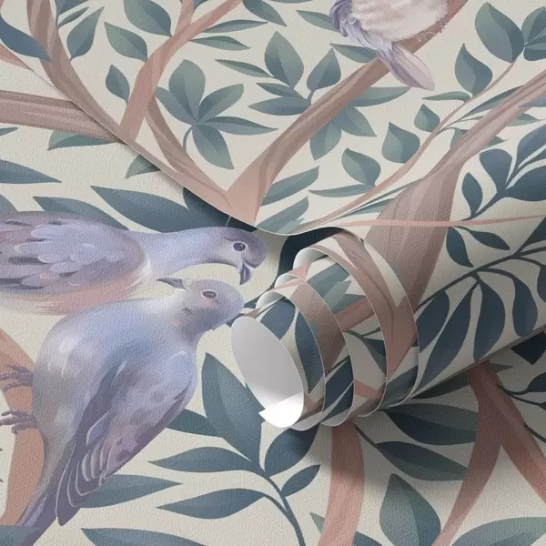 Tapet Duer blant grener og blader i en myk pastellpalett Nr. a00796