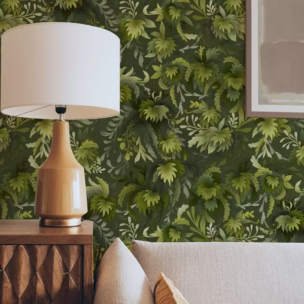 Tapet Tett grønt løvverk på mørkegrønn bakgrunn Nr. a00805