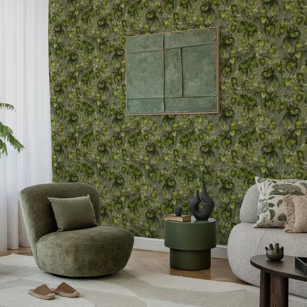 Tapet Tett grønt løvverk på en grågrønn bakgrunn Nr. a00805v1