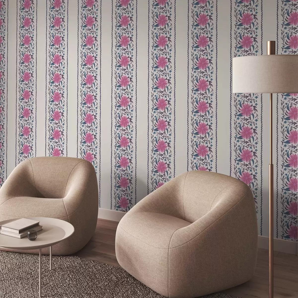 Tapet Vertikale blomsterstriper i rosa-lilla toner Nr. a00810
