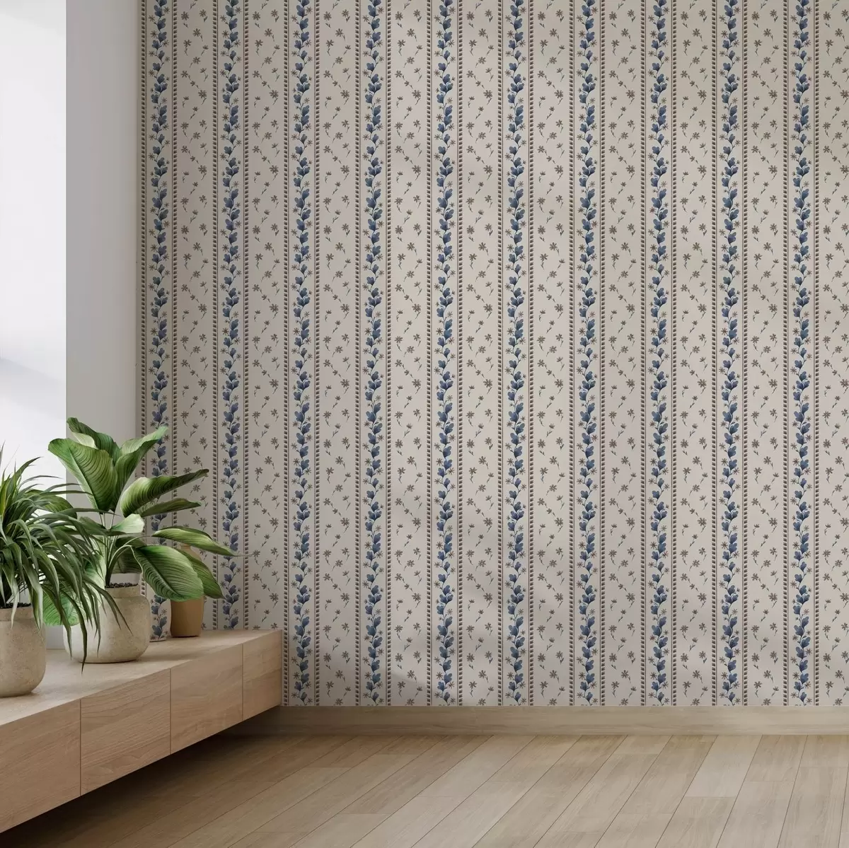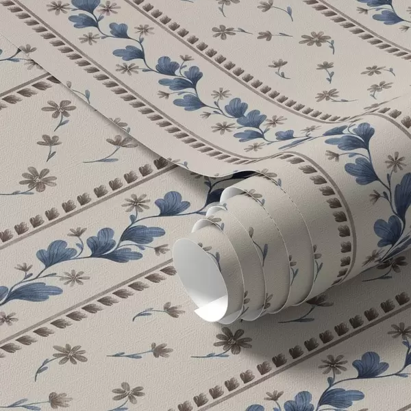Tapet Vertikale blomsterstriper i blåbrune toner Nr. a00811v3