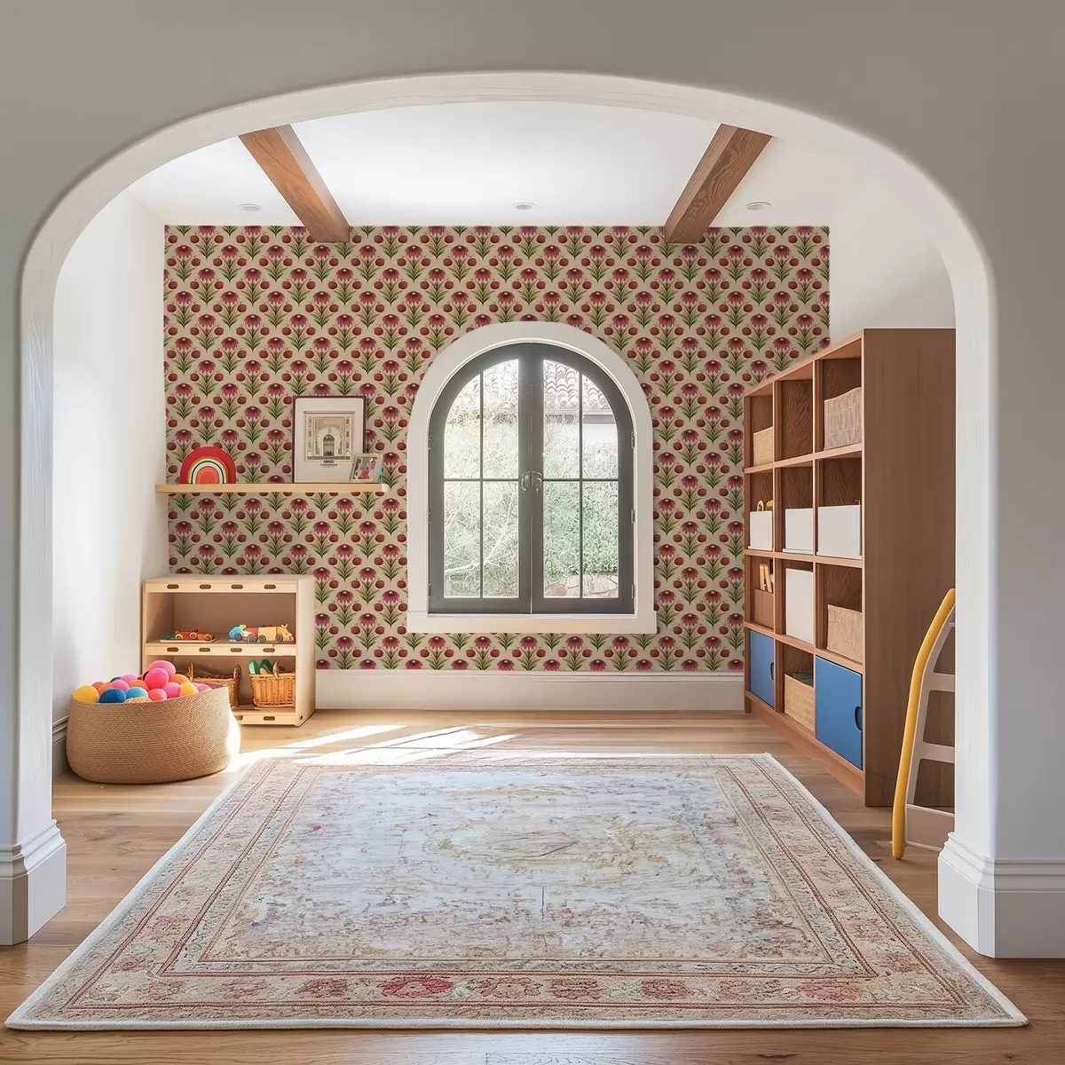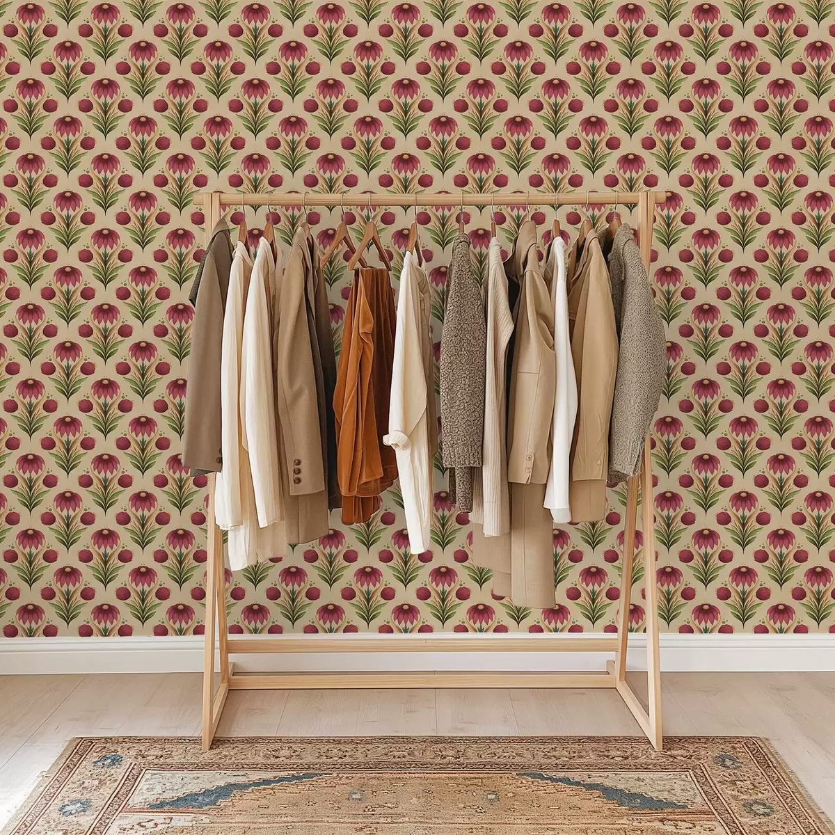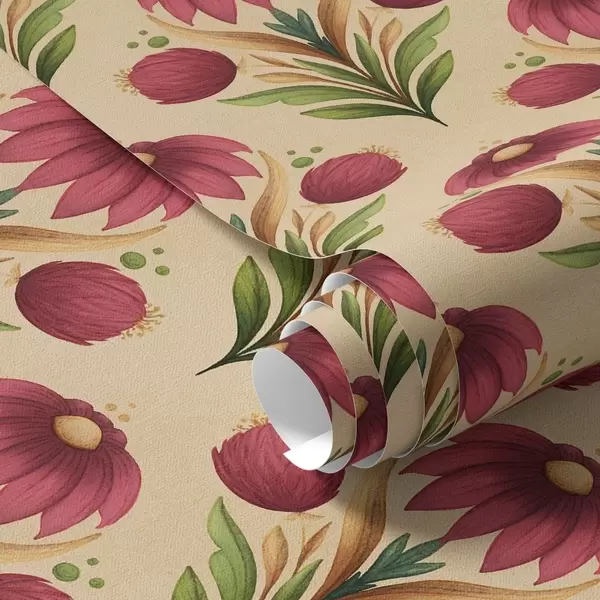 Tapet Symmetrisk blomsterornament på varm beige bakgrunn Nr. a00812v6