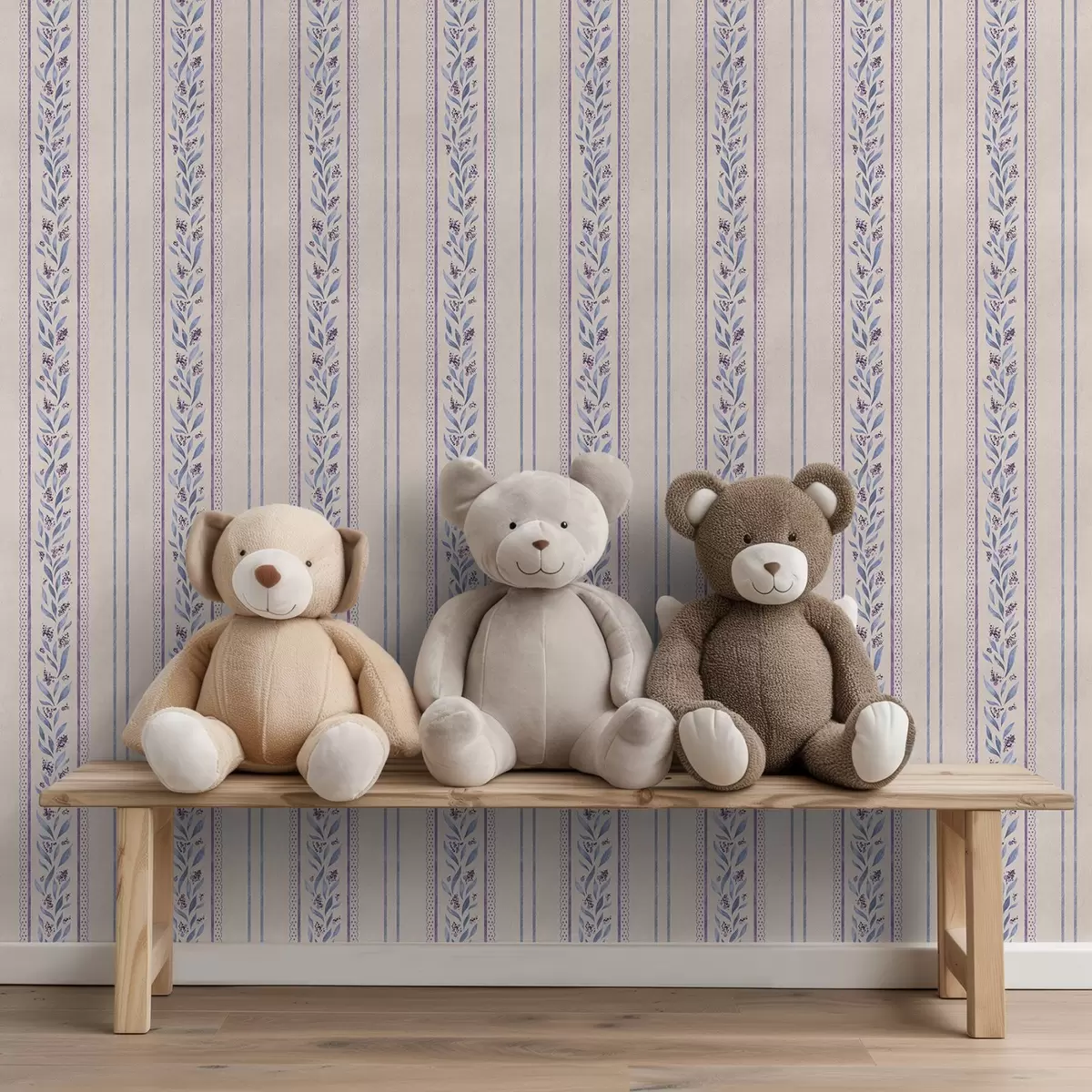 Tapet Vertikale striper med lavendelvignetter, varm beige Nr. a00813