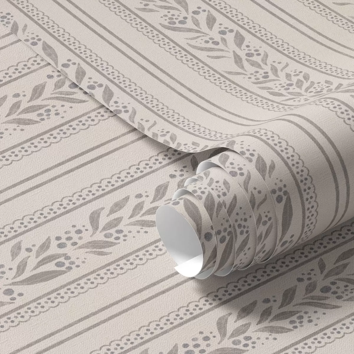 Tapet Striper med blonder og gråbeige kvist Nr. a00814