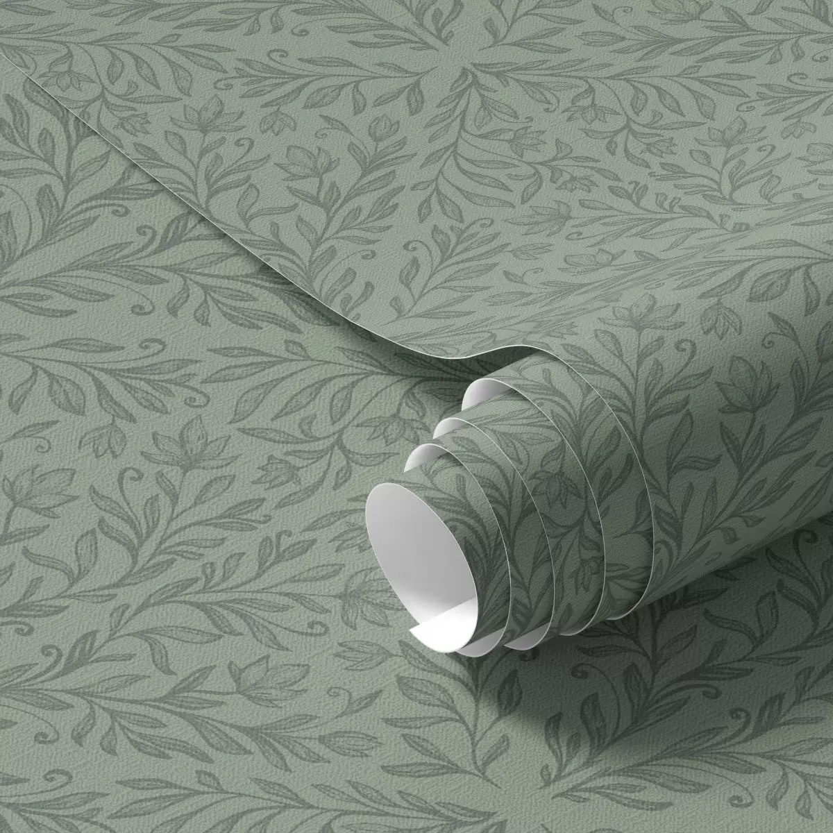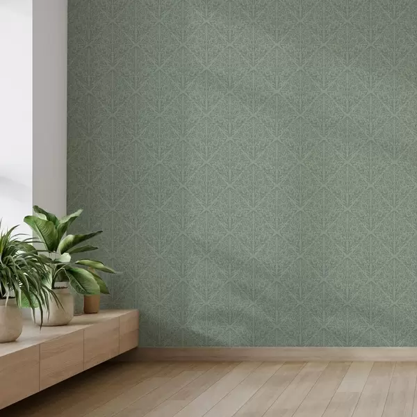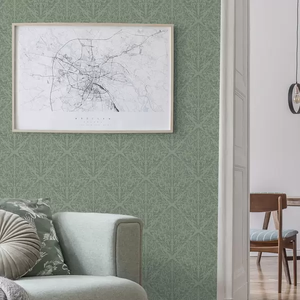 Tapet Fin botanisk damask i dempet grønt Nr. a00815v1