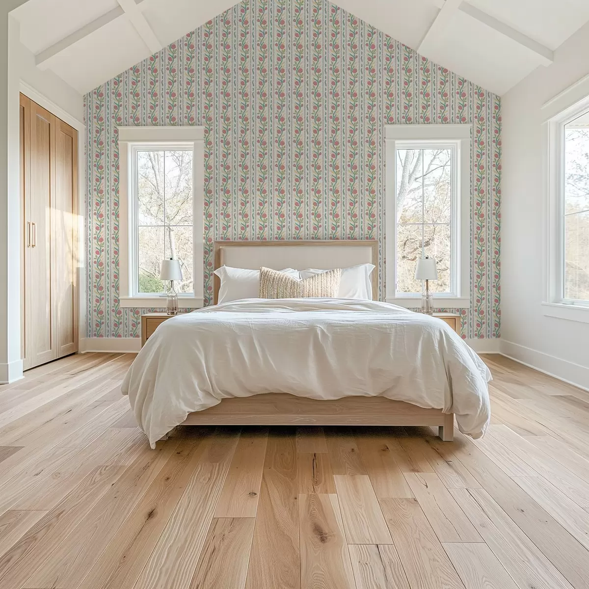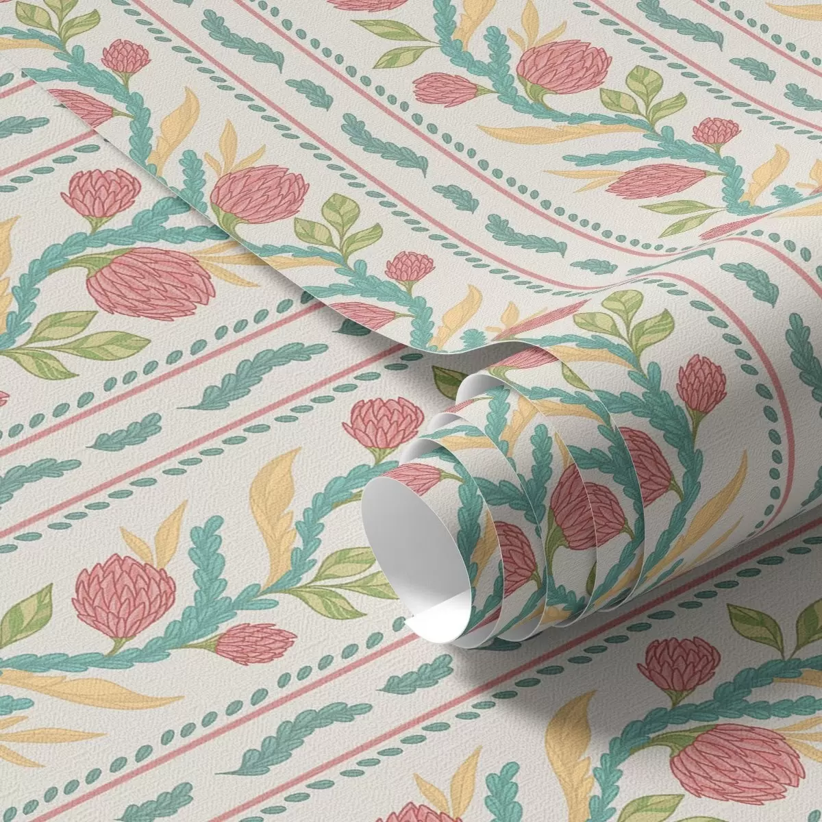 Tapet Striper med korallknopper på lys kremfarget bakgrunn Nr. a00816v1
