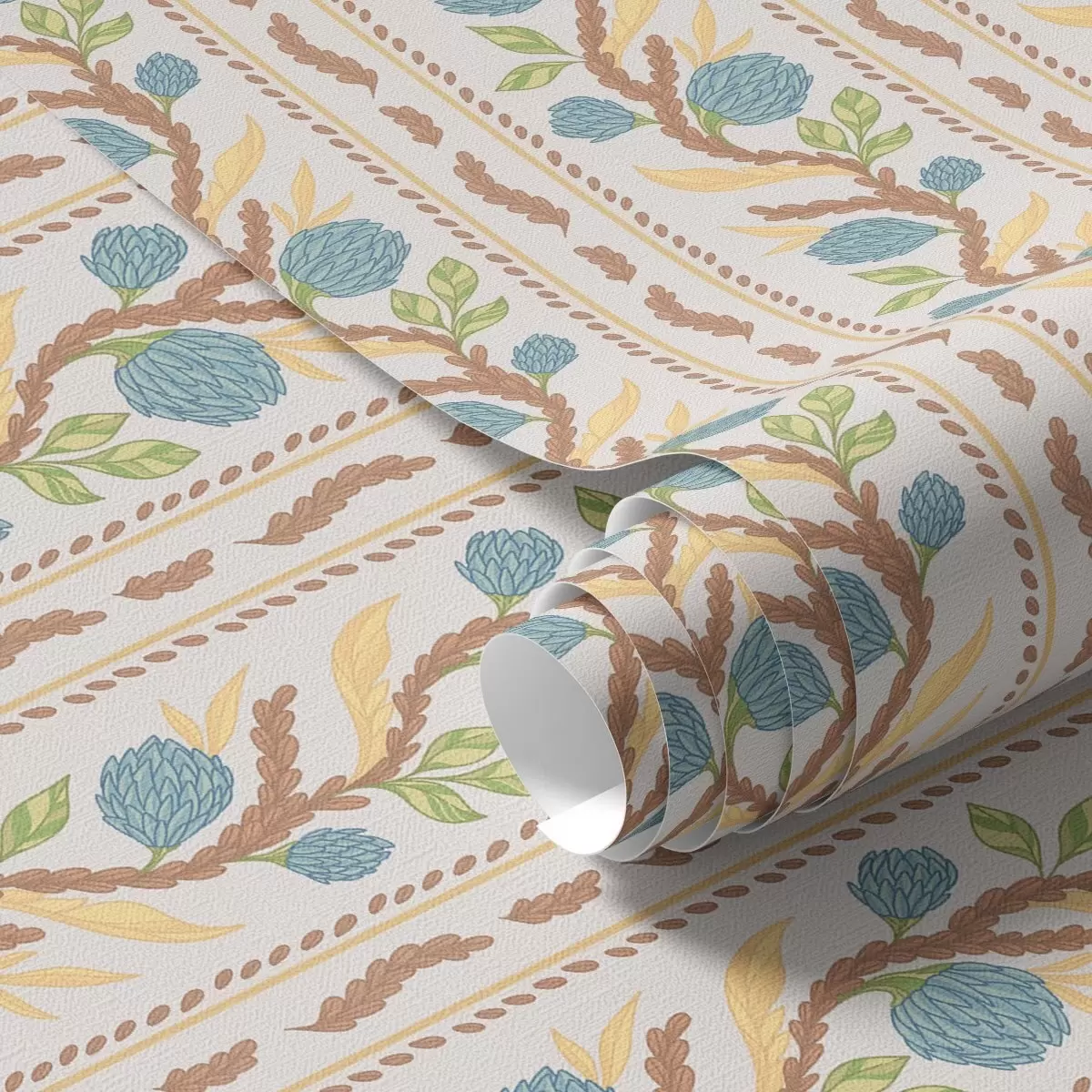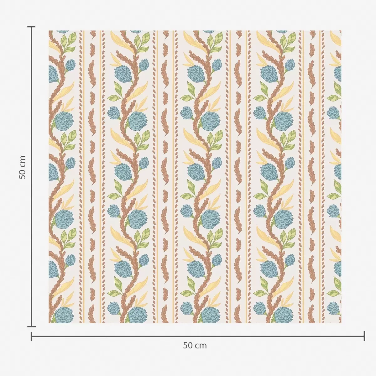 Tapet Vertikale bukettstriper med blå blomster på en varm bakgrunn Nr. a00816v3