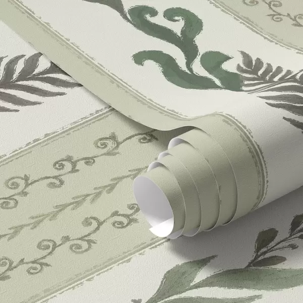 Tapet Striper med grener i grønne og grå nyanser, myk kontrast Nr. a00824