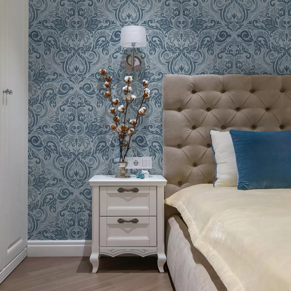 Tapet Klassisk damask, dypblå på lyseblå Nr. a00826