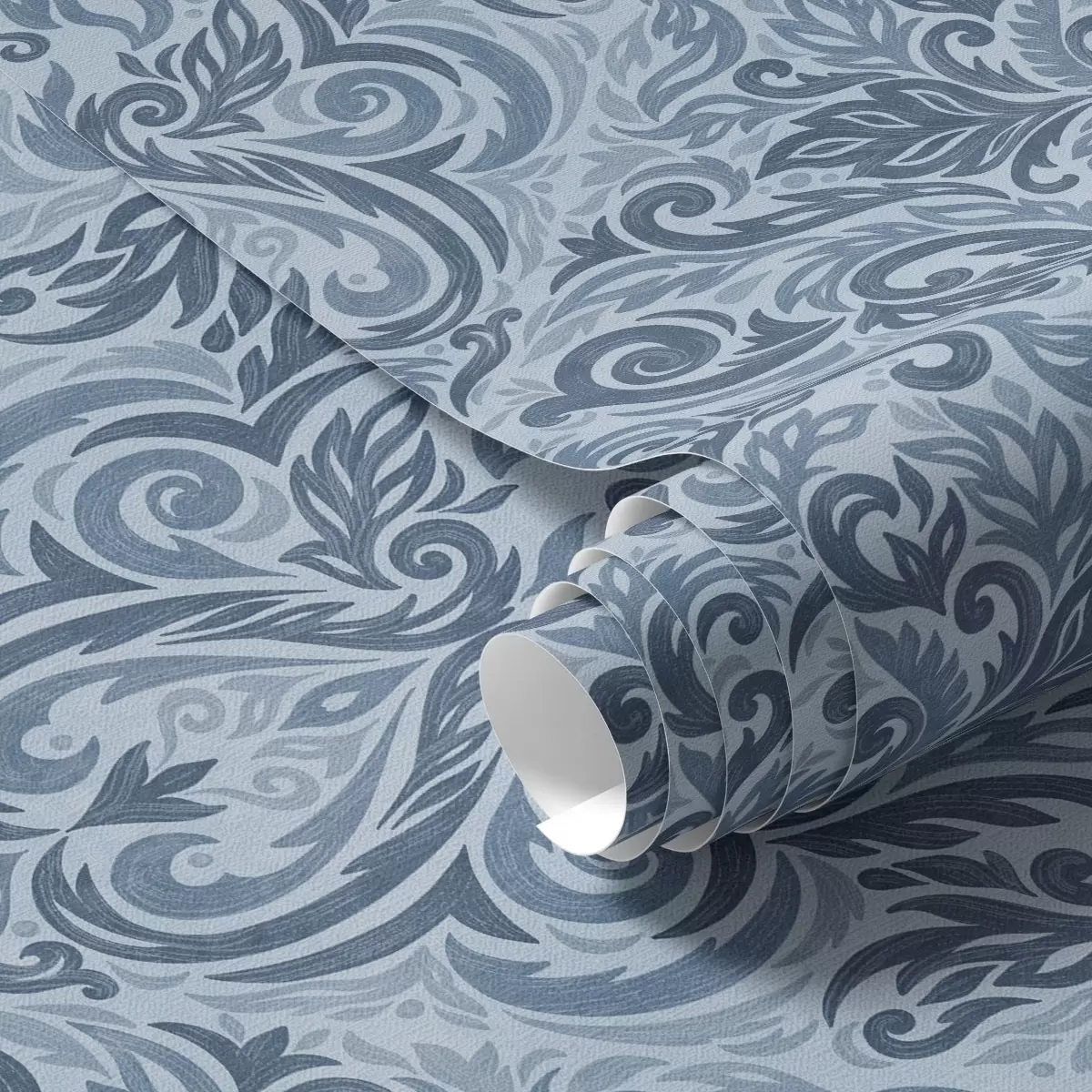 Tapet Damask i kule blåtoner, sterkere kontrast Nr. a00826v2