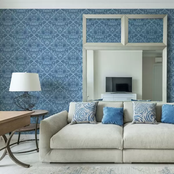 Tapet Damask i kule blåtoner, sterkere kontrast Nr. a00826v2