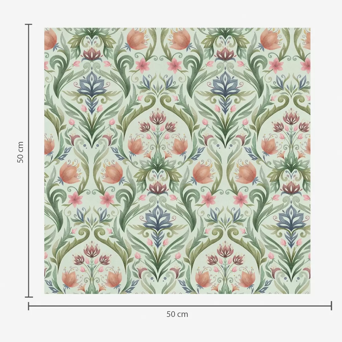 Tapet Symmetrisk blomsterornament, mint-kremfarget palett Nr. a00827v1