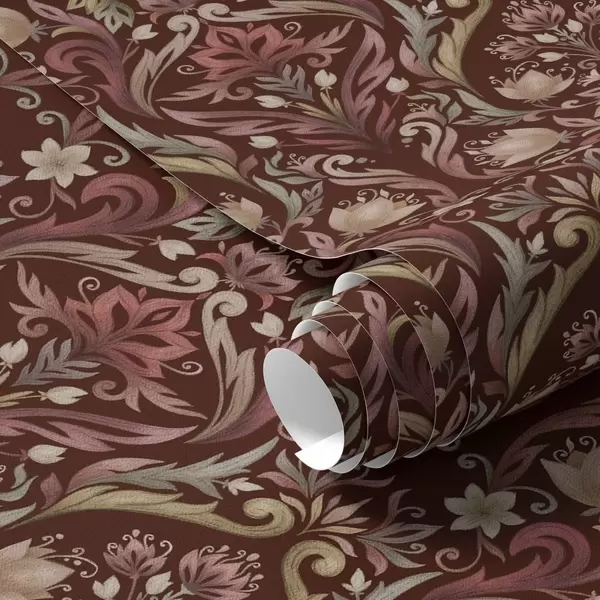 Tapet Tulipanornament, rik burgunderfarget bakgrunn Nr. a00827v2
