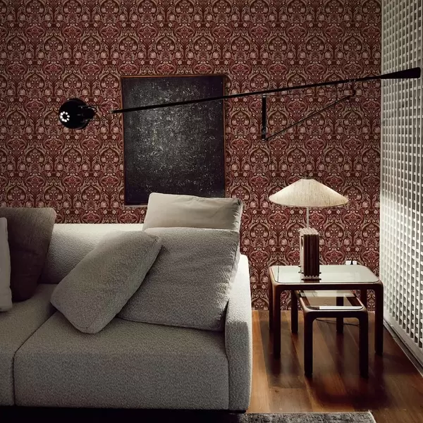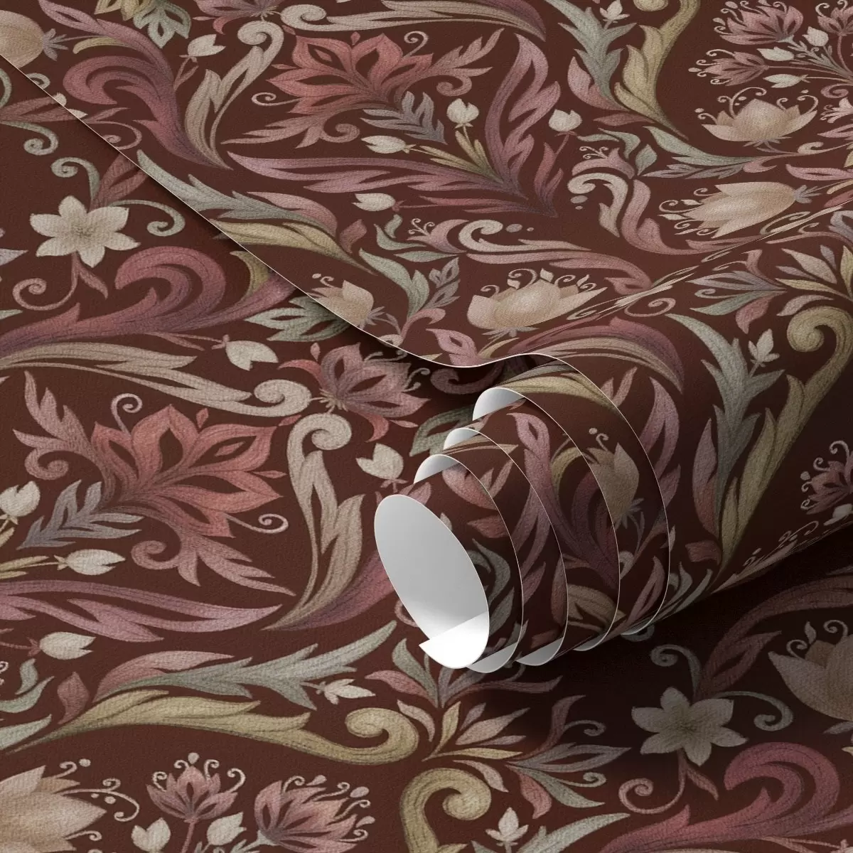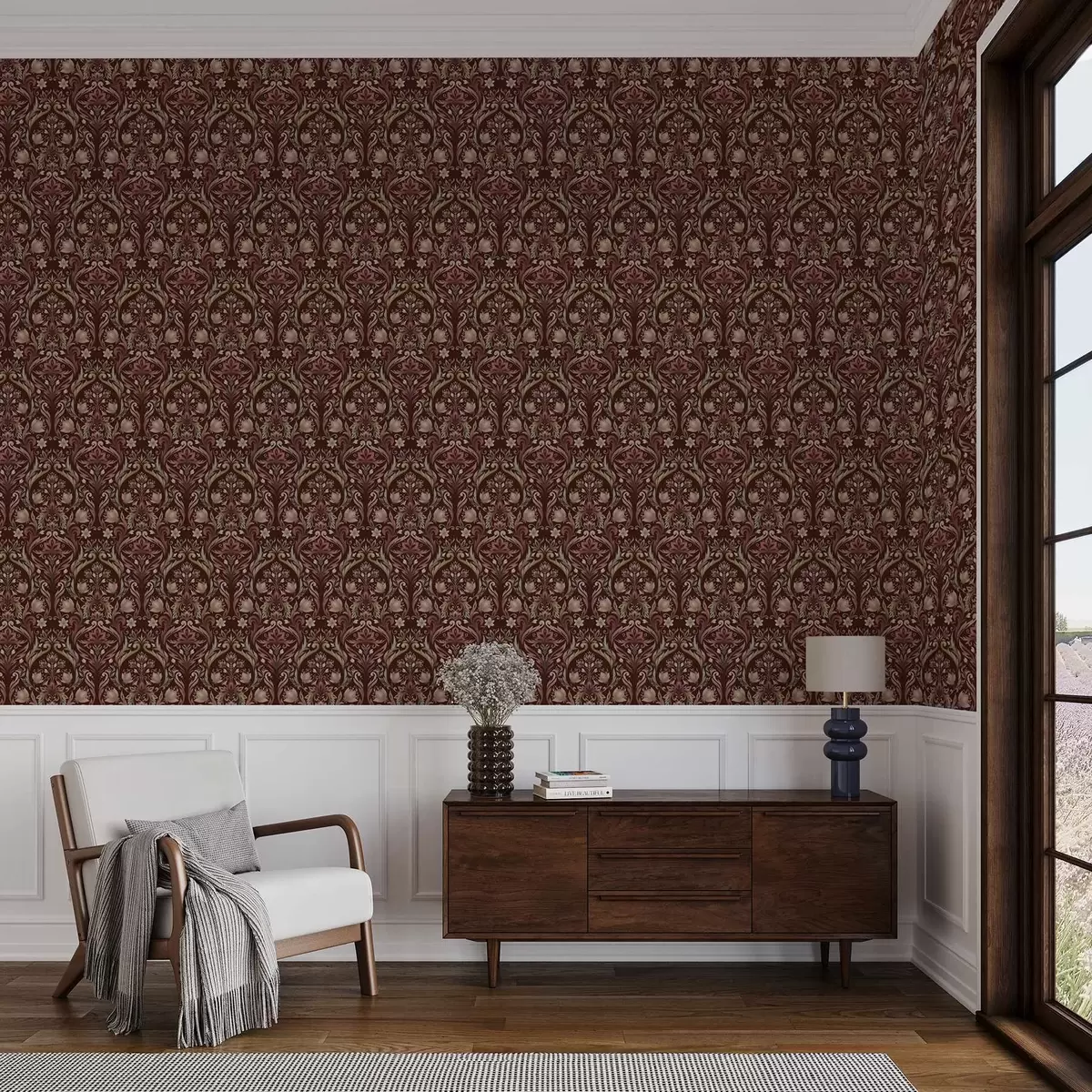 Tapet Tulipanornament, rik burgunderfarget bakgrunn Nr. a00827v2