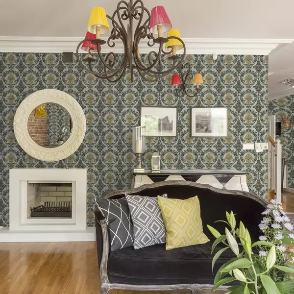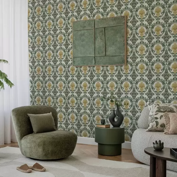 Tapet Damask med grønne krøller på lys bakgrunn Nr. a00828v1