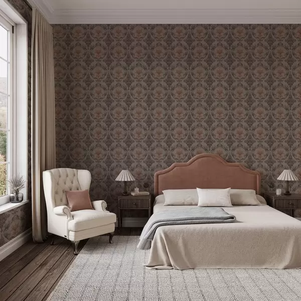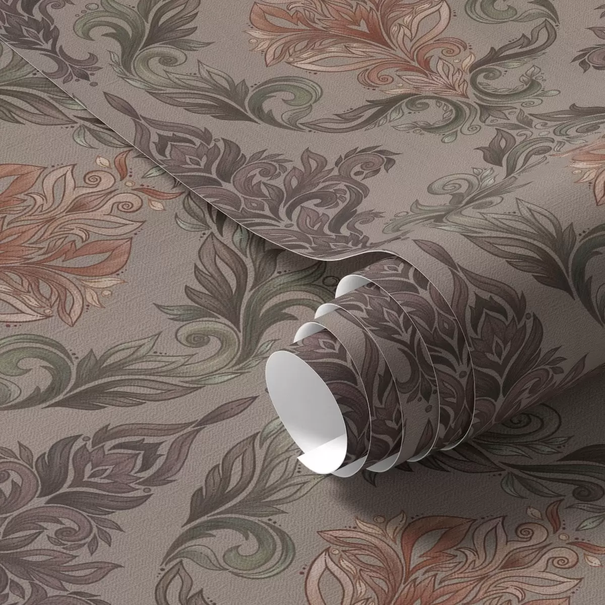 Tapet Damask i brun-terrakottafarger, varm grå bakgrunn Nr. a00828v2