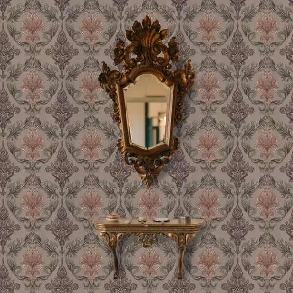 Tapet Damask i brun-terrakottafarger, varm grå bakgrunn Nr. a00828v2