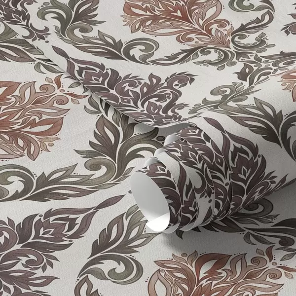 Tapet Damask med kobberbrune detaljer på lys bakgrunn Nr. a00828v4