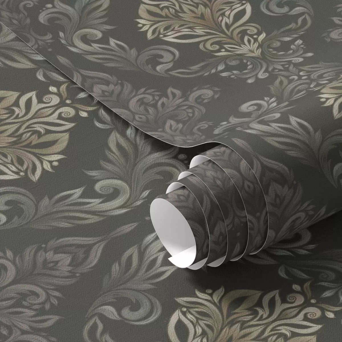 Bakgrunn Damask på mørk grafittbakgrunn, oliven-okkerfargede detaljer a00828v5