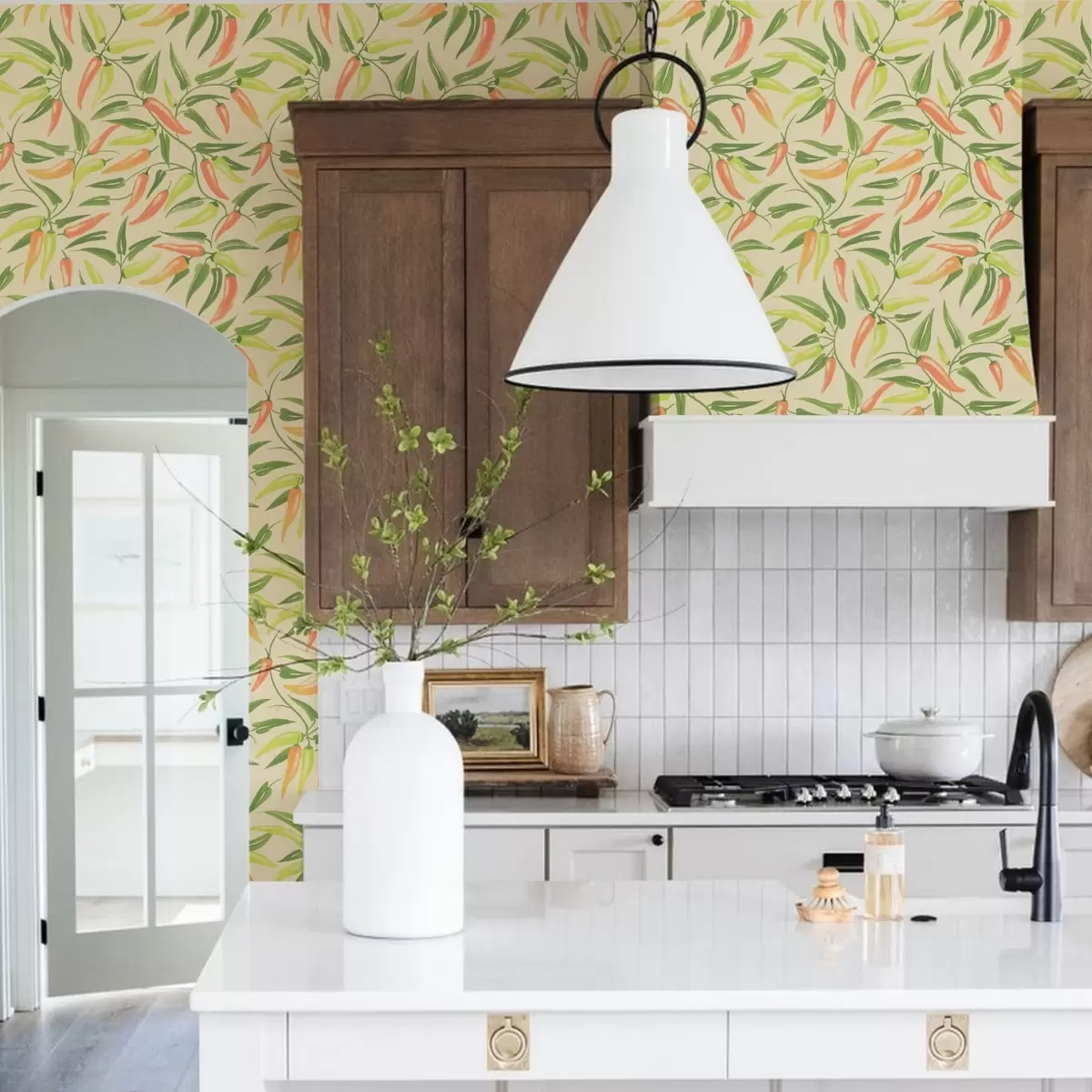 Tapet Grener med røde og grønne paprikaer på en varm bakgrunn Nr. a00829