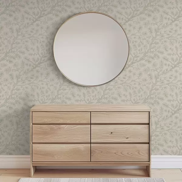 Tapet Furugrener i lysegrønne toner på beige bakgrunn Nr. a00838v1