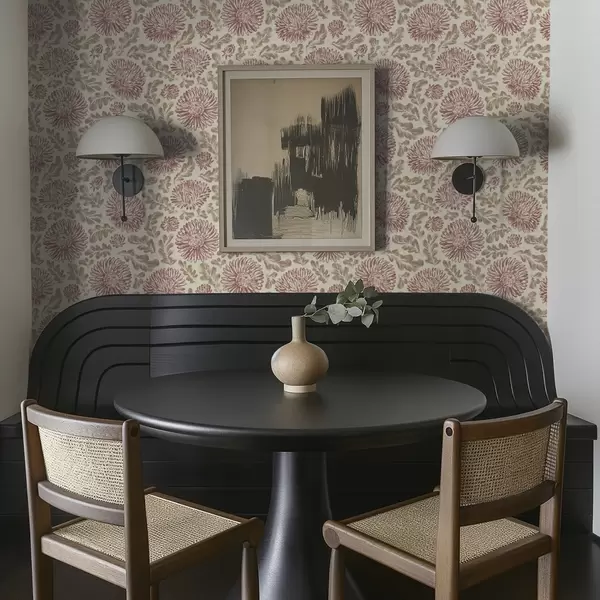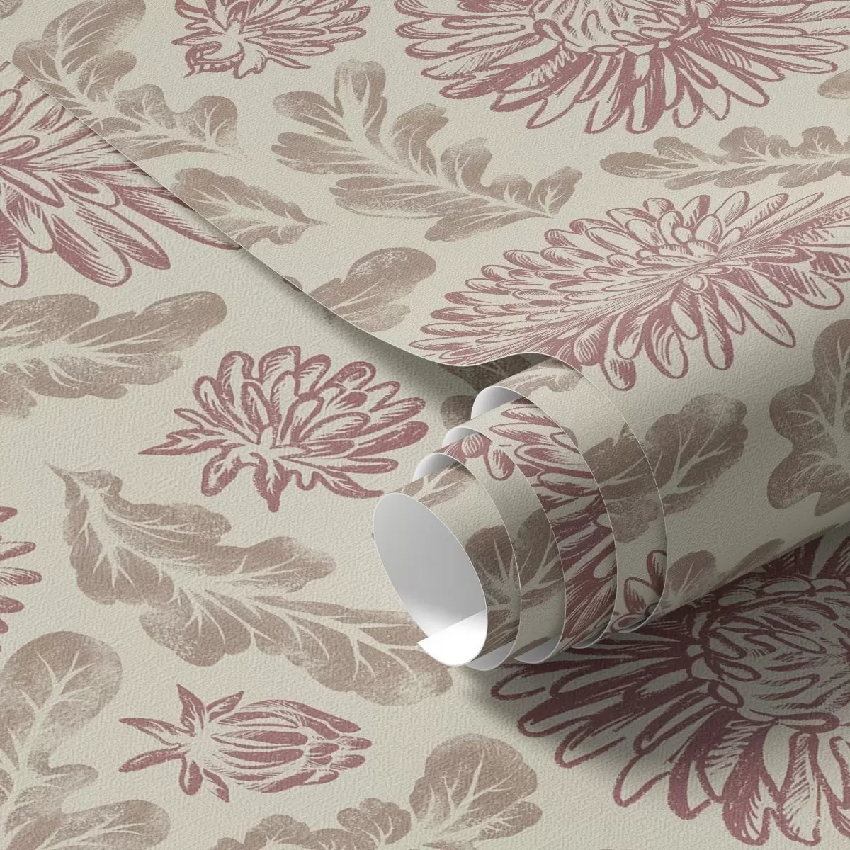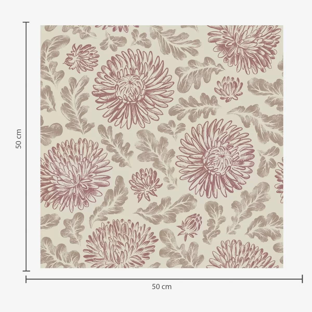 Tapet Krysantemum med vinaktige innslag på kremfarget bakgrunn Nr. a00840v1