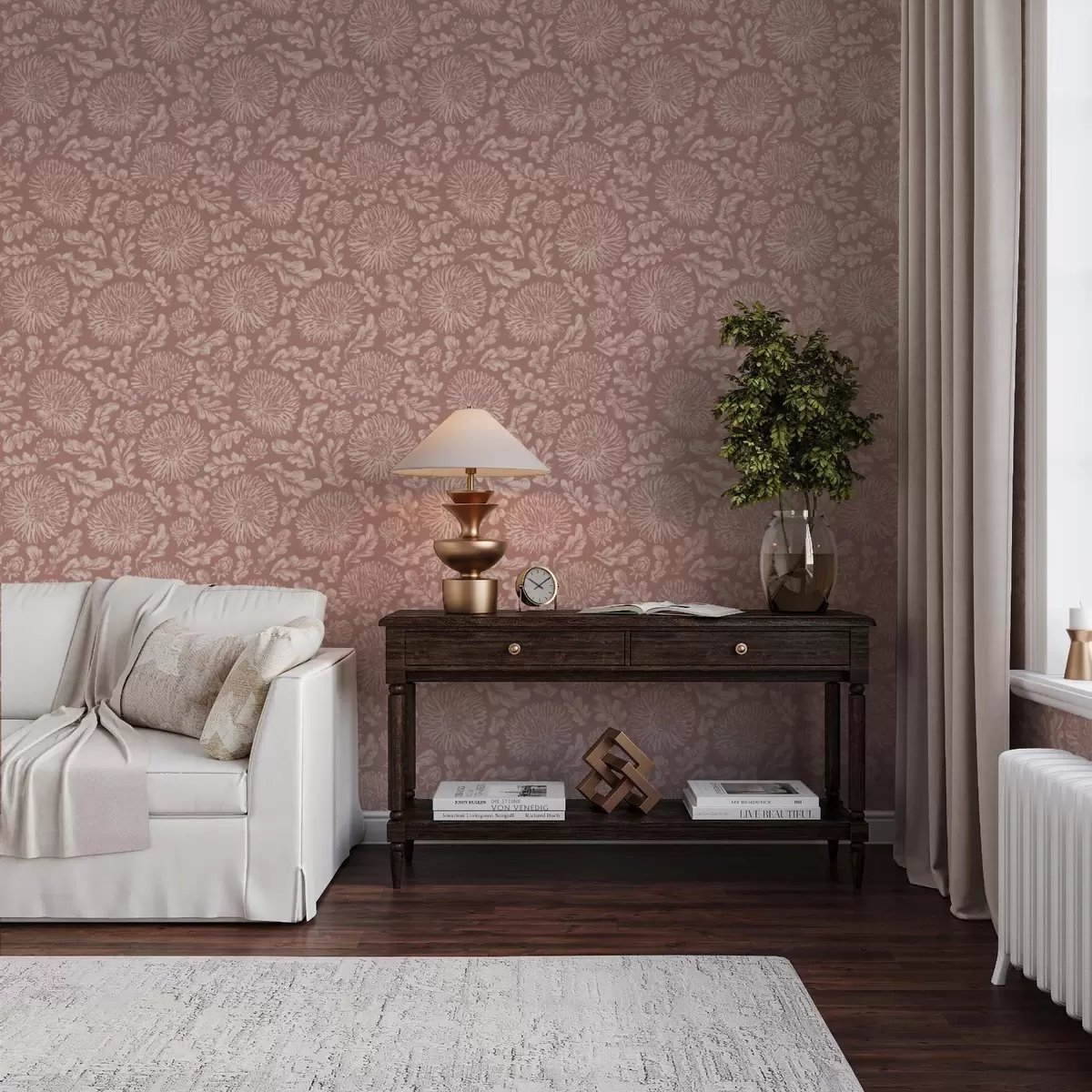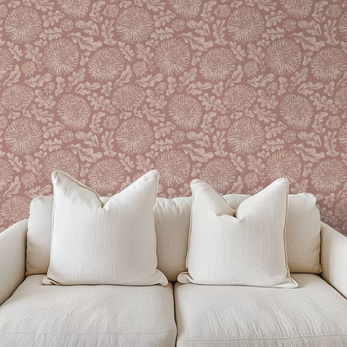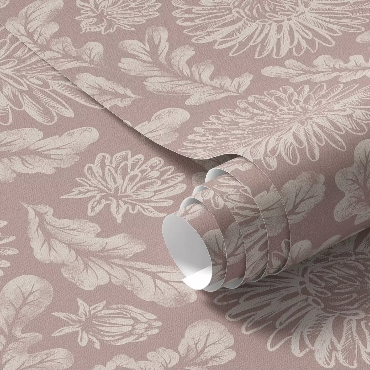 Tapet Kremfargede krysantemum på støvrosa bakgrunn Nr. a00840v2