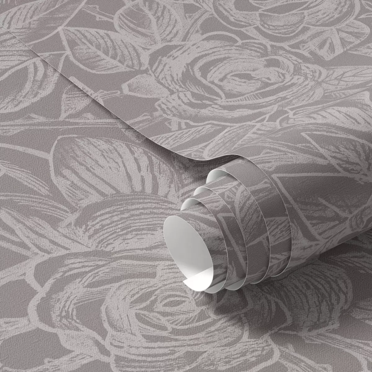 Tapet Graverte roser på dyp gråbrun Nr. a00841