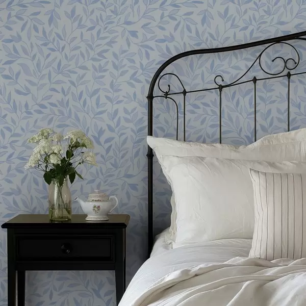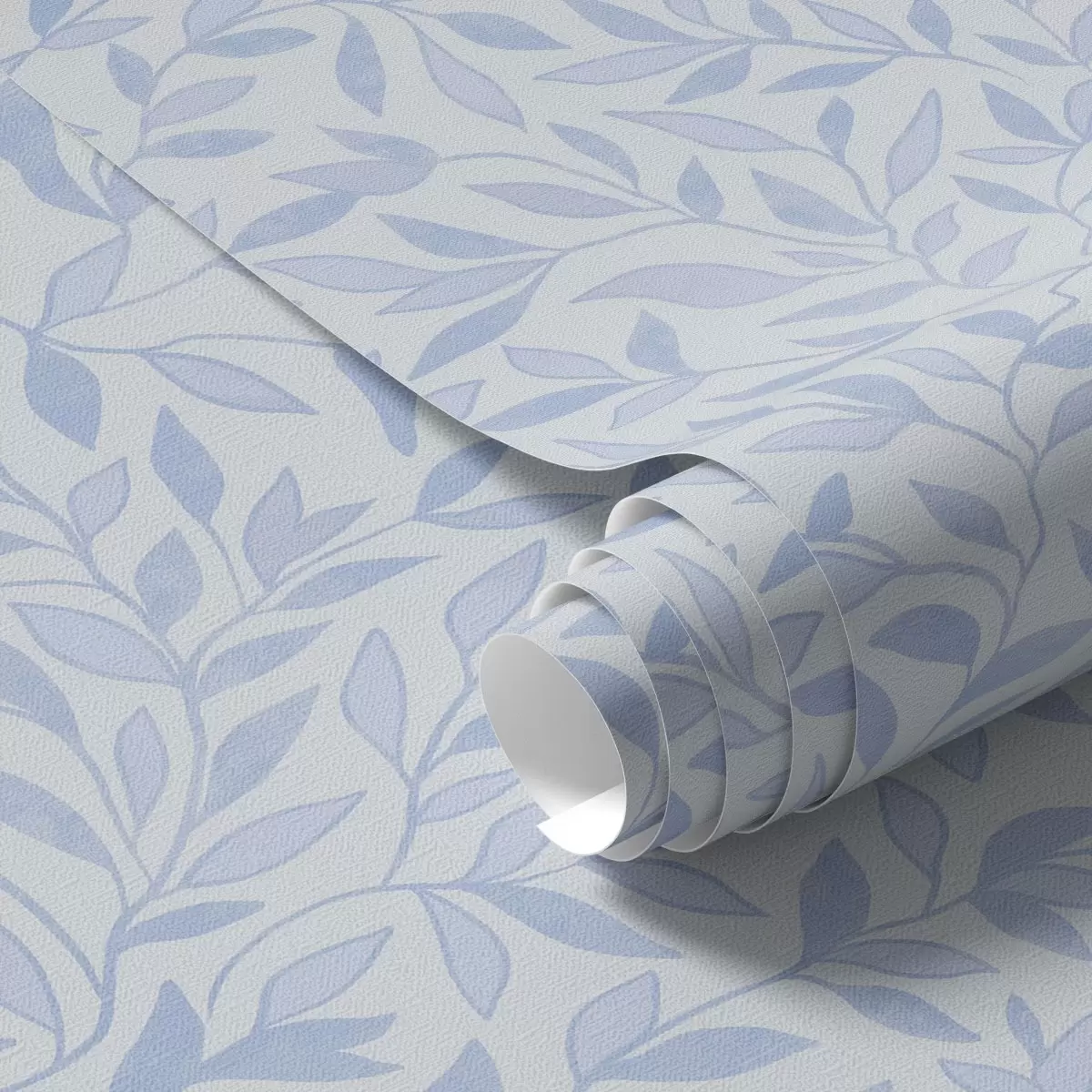 Tapet Blå kvister med blader på lyseblå bakgrunn Nr. a00842