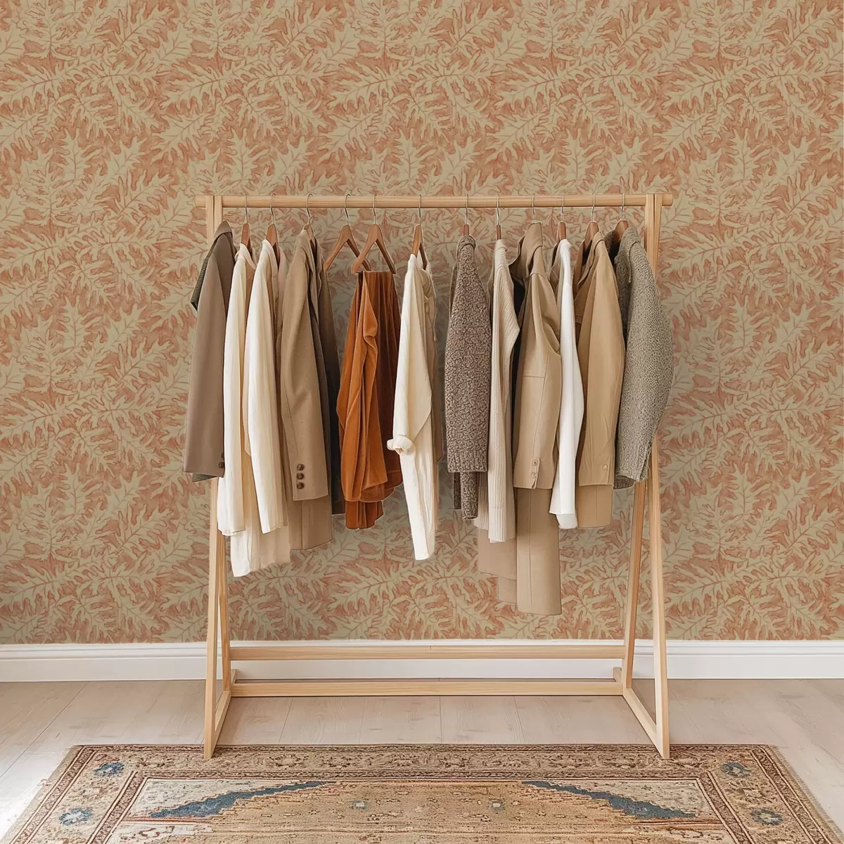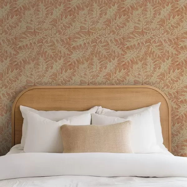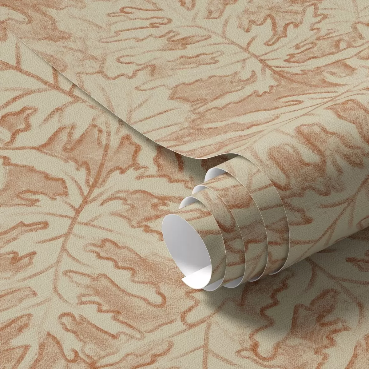Tapet Store eikeblader i terrakotta på kremfarget bakgrunn Nr. a00846