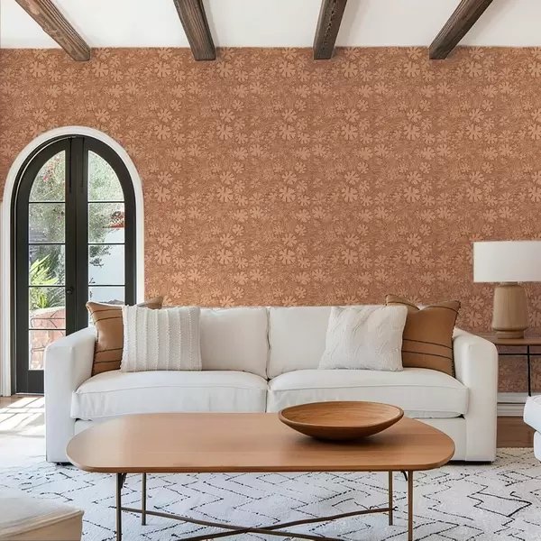 Tapet Markblader og gress i en terrakotta-beige fargepalett Nr. a00847